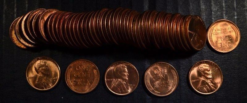 BU ROLL OF 1946-S LINCOLN CENTS ESTIMATE $200 - $225.