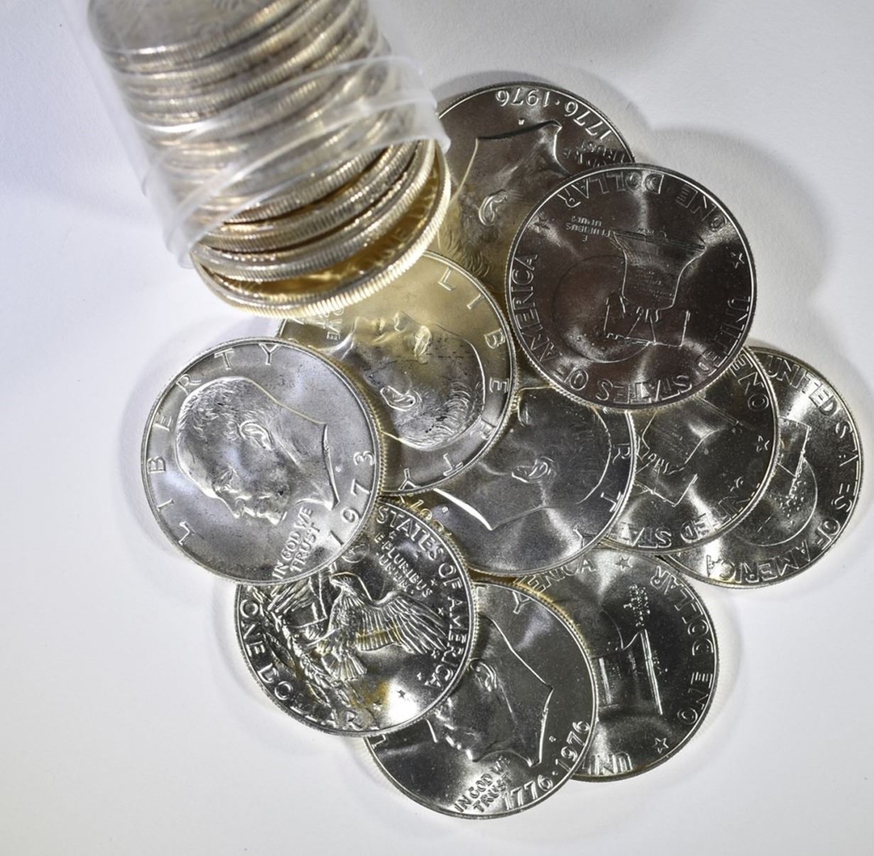 BU SILVER EISENHOWER DOLLARS: 7-1971-S, 3-1972-S, 2-1973-S, 1-1974-S & 7-1976-S ESTIMATE $300 - $350.