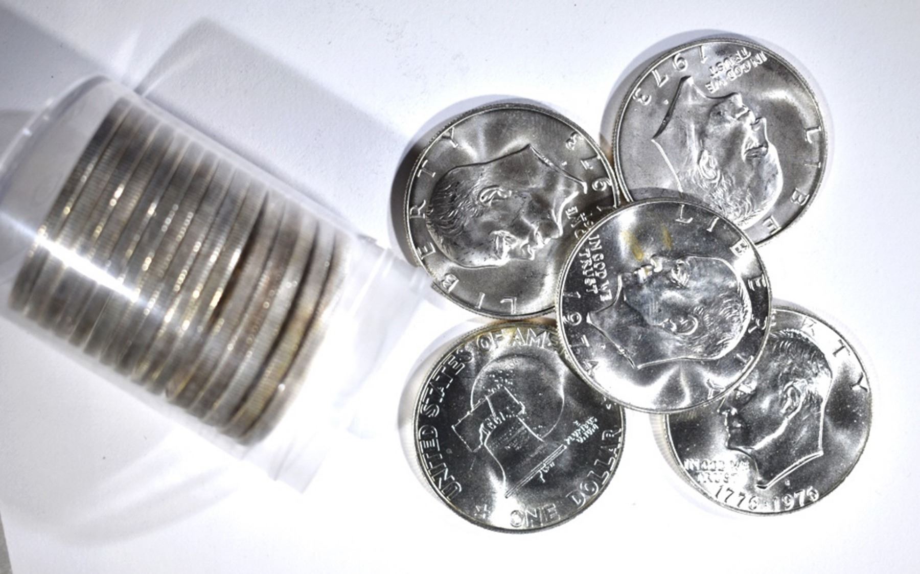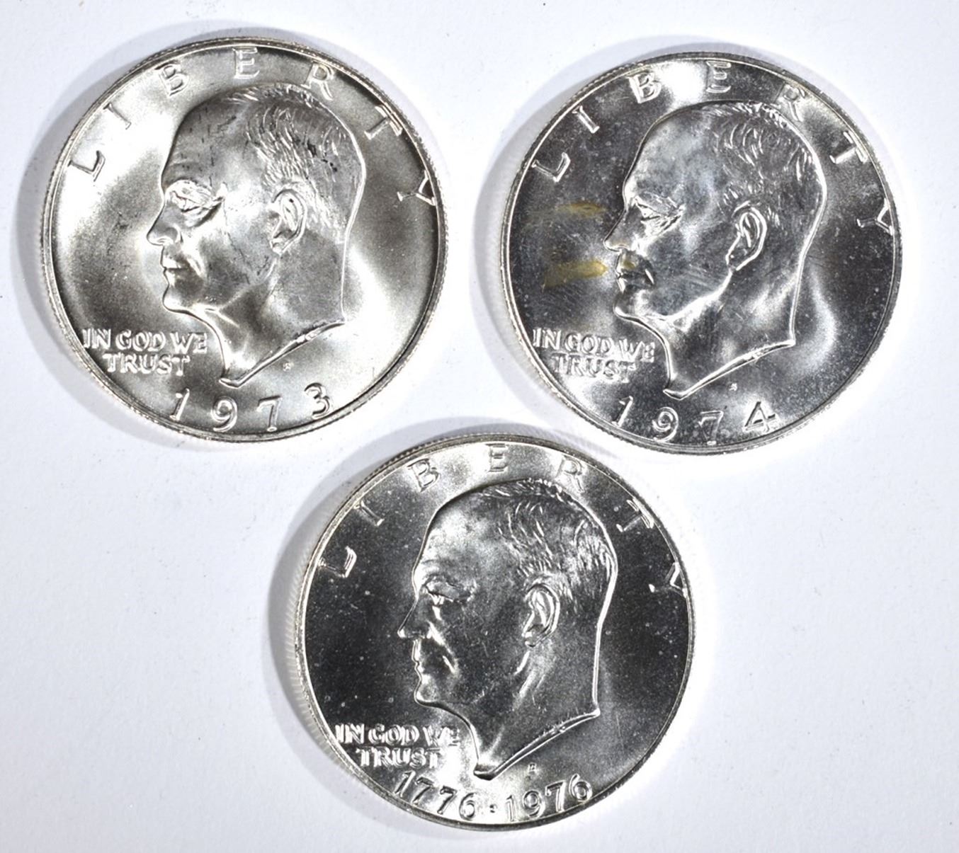 BU SILVER EISENHOWER DOLLARS: 7-1971-S, 3-1972-S, 2-1973-S, 1-1974-S & 7-1976-S ESTIMATE $300 - $350.