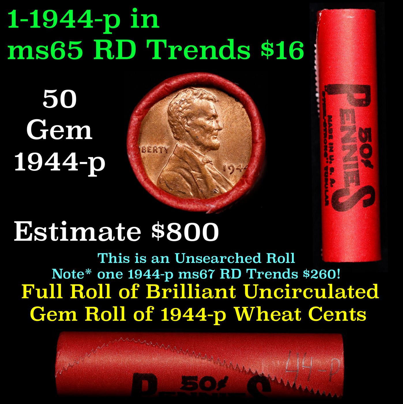 BU Shotgun Lincoln 1c roll, 1944-p 50 pcs Steel-Strong Wrapper 50c. A terrific Shotgun roll of Lincoln cents in a steel strong wrapper. Most if not all coins should be cherry red.