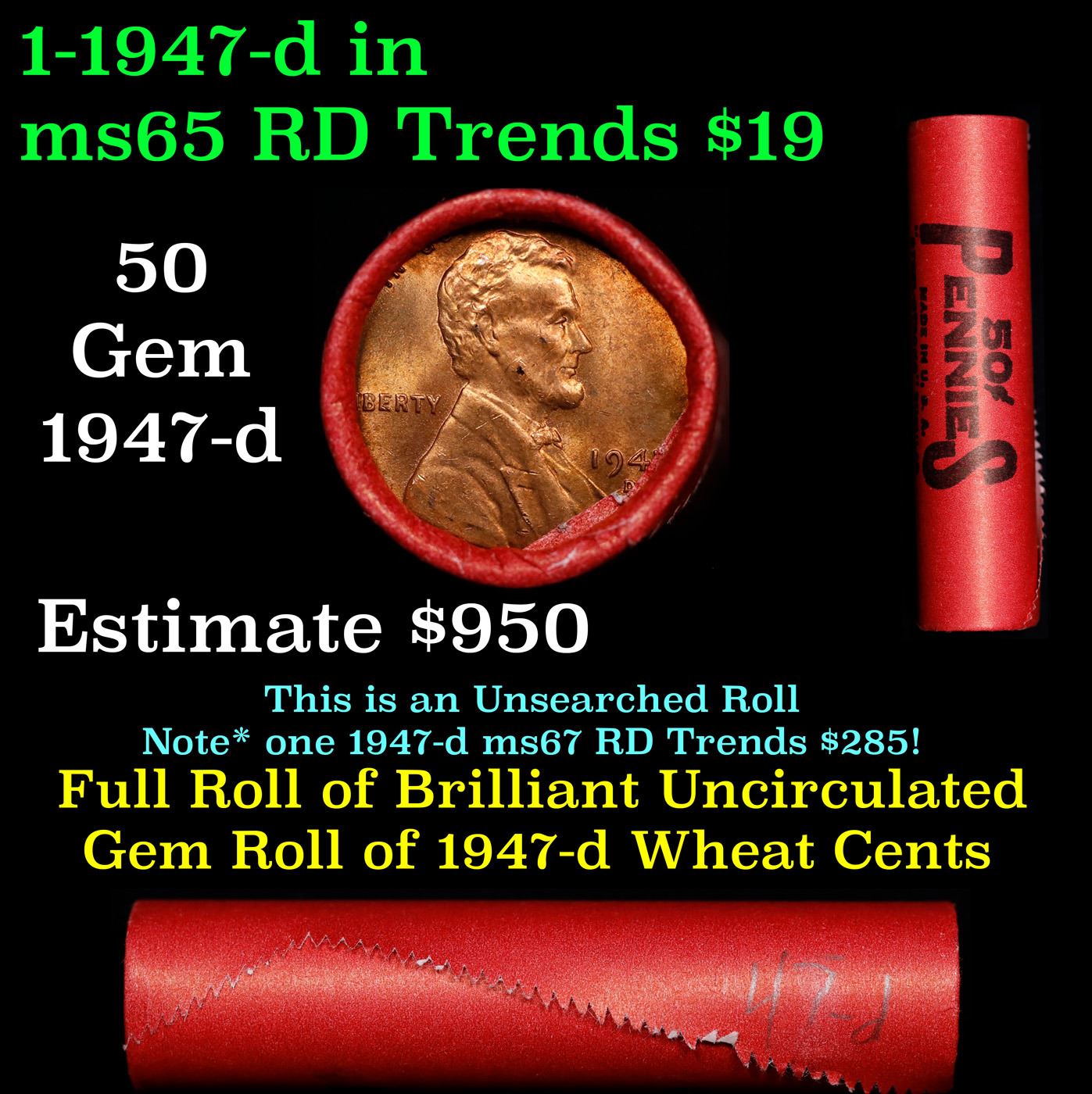 BU Shotgun Lincoln 1c roll, 1947-d 50 pcs Steel-Strong Wrapper 50c