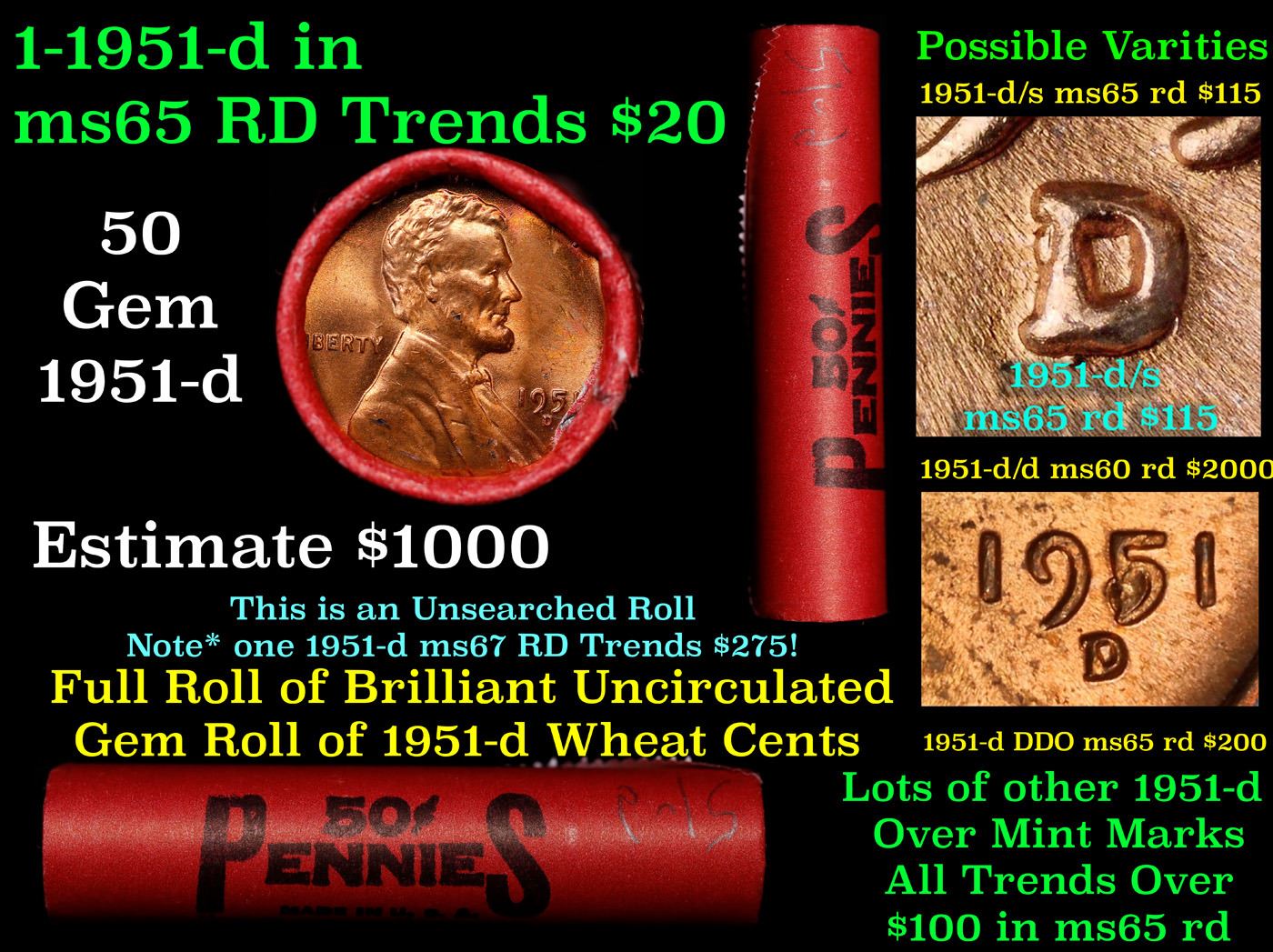 BU Shotgun Lincoln 1c roll, 1951-d 50 pcs Steel-Strong Wrapper Lots Of Possible Varities