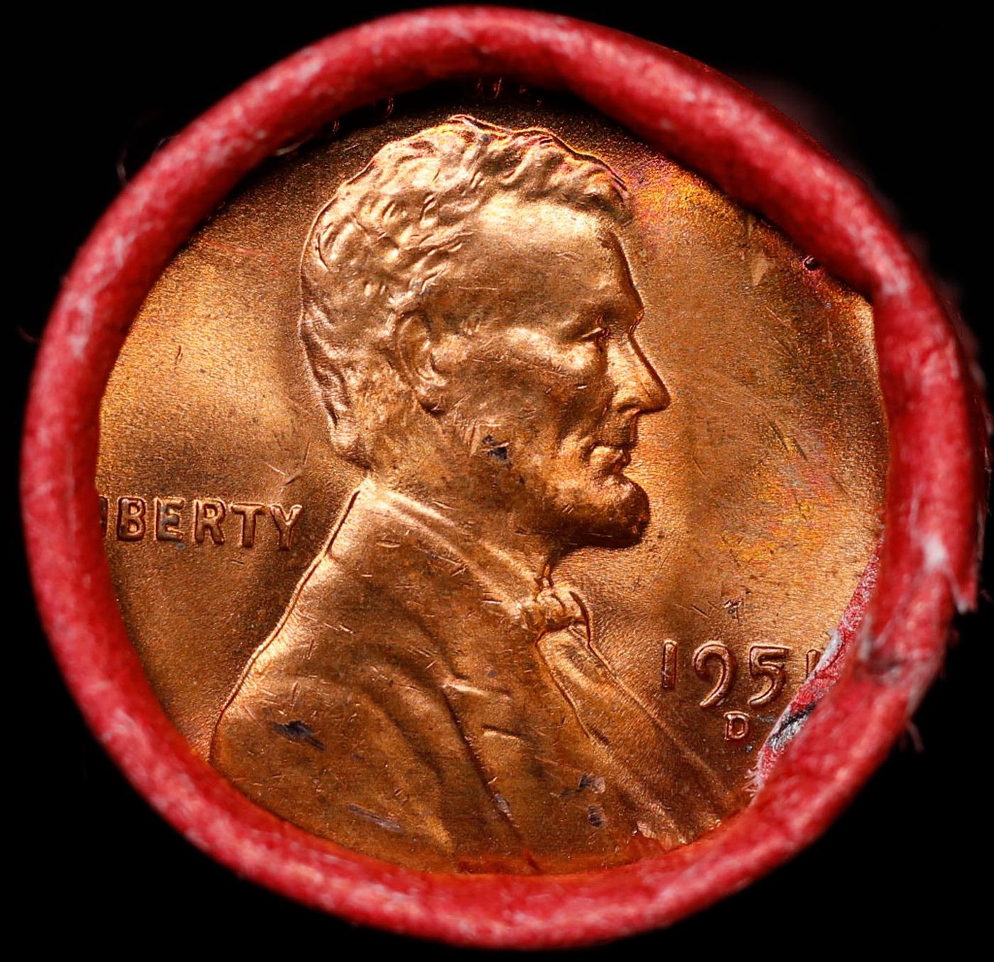 BU Shotgun Lincoln 1c roll, 1951-d 50 pcs Steel-Strong Wrapper Lots Of Possible Varities. A terrific Shotgun roll of Lincoln cents in a steel strong wrapper. Most if not all coins should be cherry red.