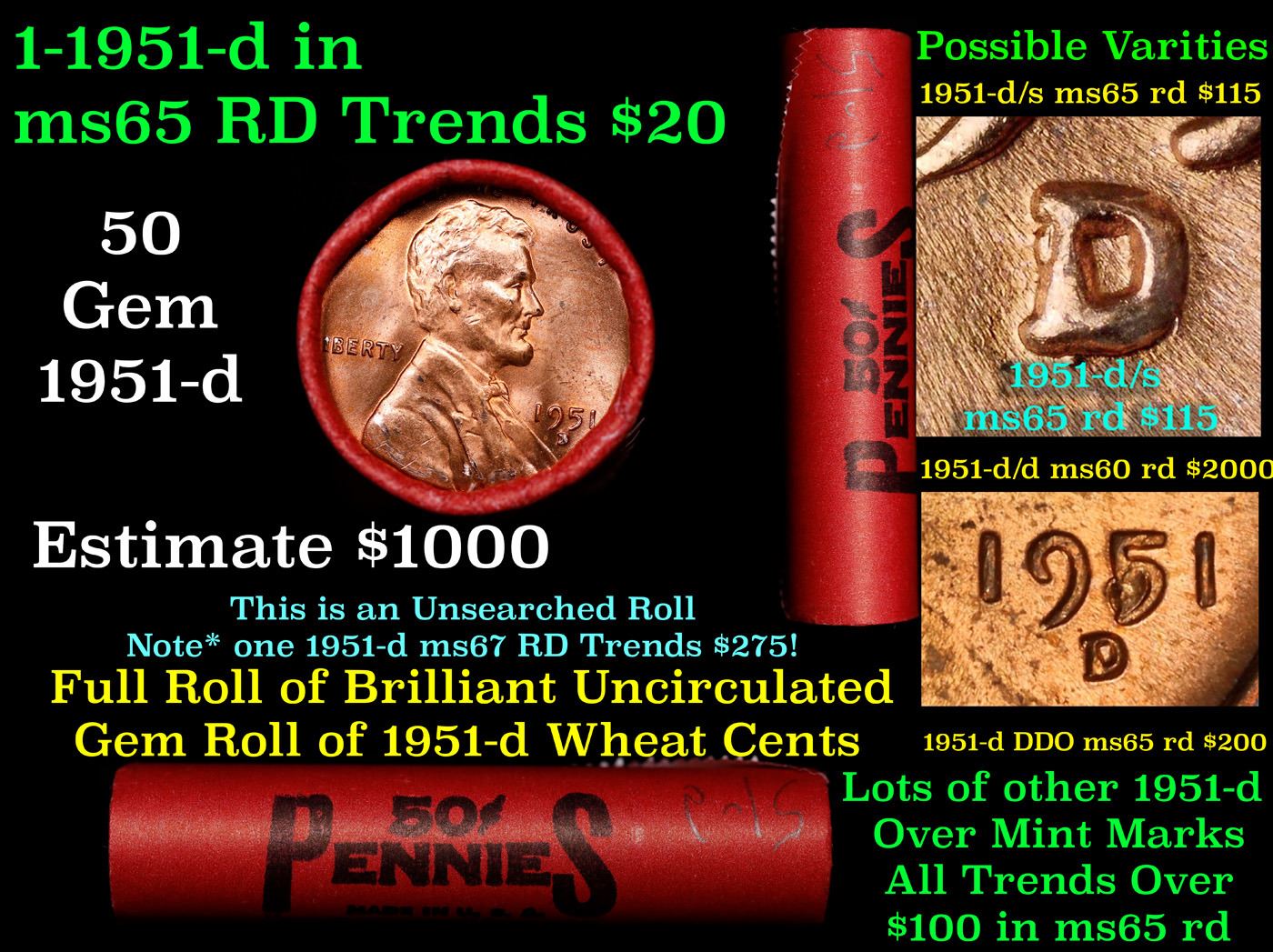 BU Shotgun Lincoln 1c roll, 1951-d 50 pcs Steel-Strong Wrapper Lots Of Possible Varities