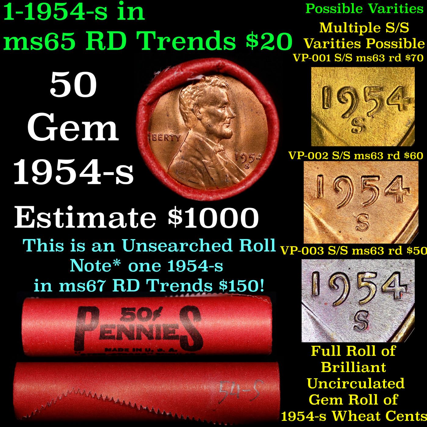 BU Shotgun Lincoln 1c roll, 1954-s 50 pcs Steel-Strong Wrapper 50c. A terrific Shotgun roll of Lincoln cents in a steel strong wrapper. Most if not all coins should be cherry red.