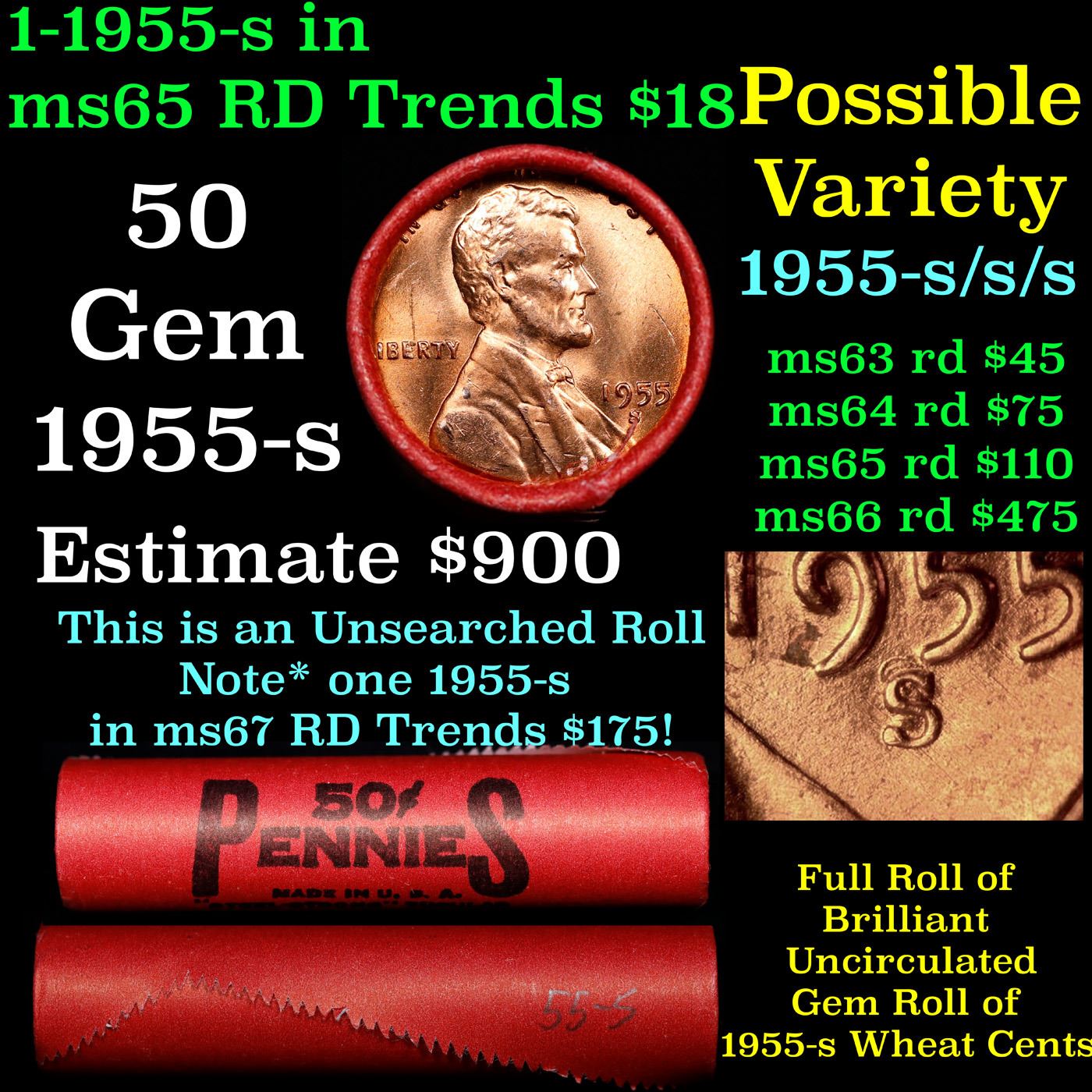 BU Shotgun Lincoln 1c roll, 1955-s 50 pcs Steel-Strong Wrapper 50c. A terrific Shotgun roll of Lincoln cents in a steel strong wrapper. Most if not all coins should be cherry red.