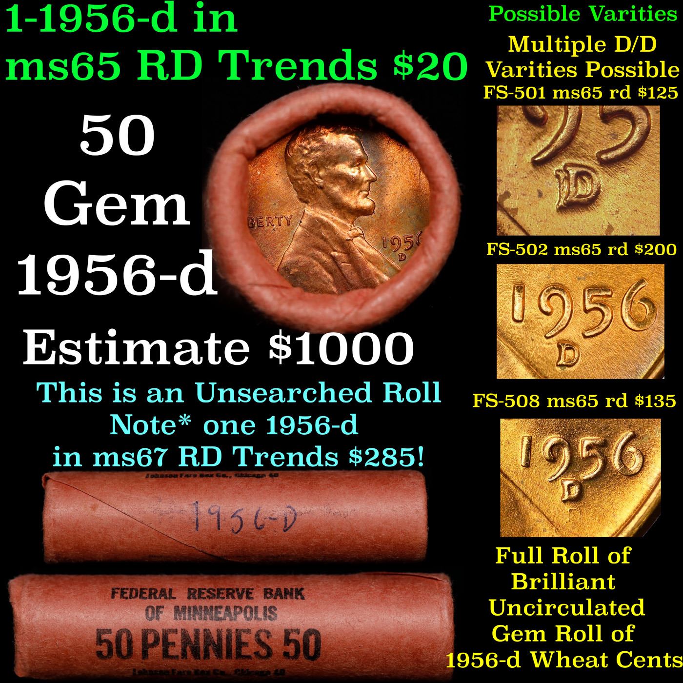BU Shotgun Lincoln 1c roll, 1956-d 50 pcs Original Federal Reserve Bank OF Minneapolis, MN Wrapper