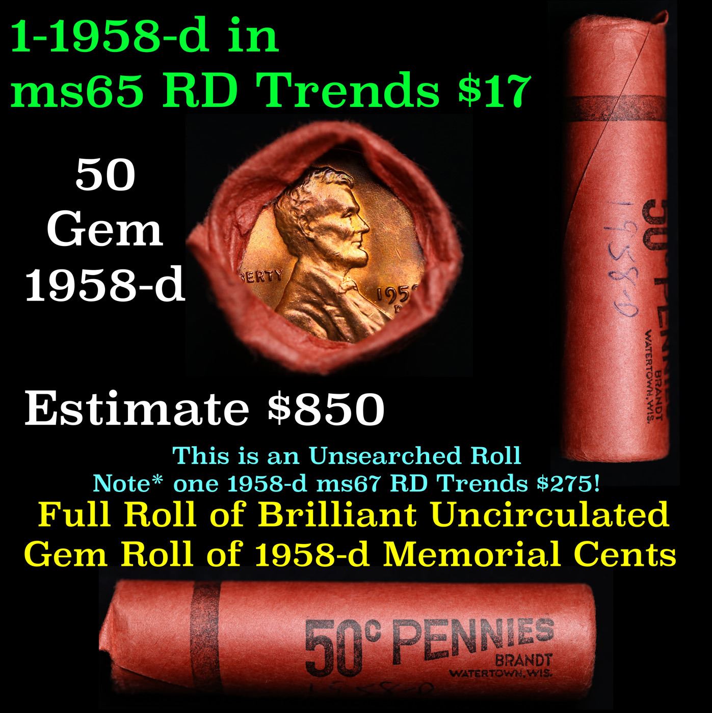 BU Shotgun Lincoln 1c roll, 1958-d 50 pcs Brandt Wrapper 50c