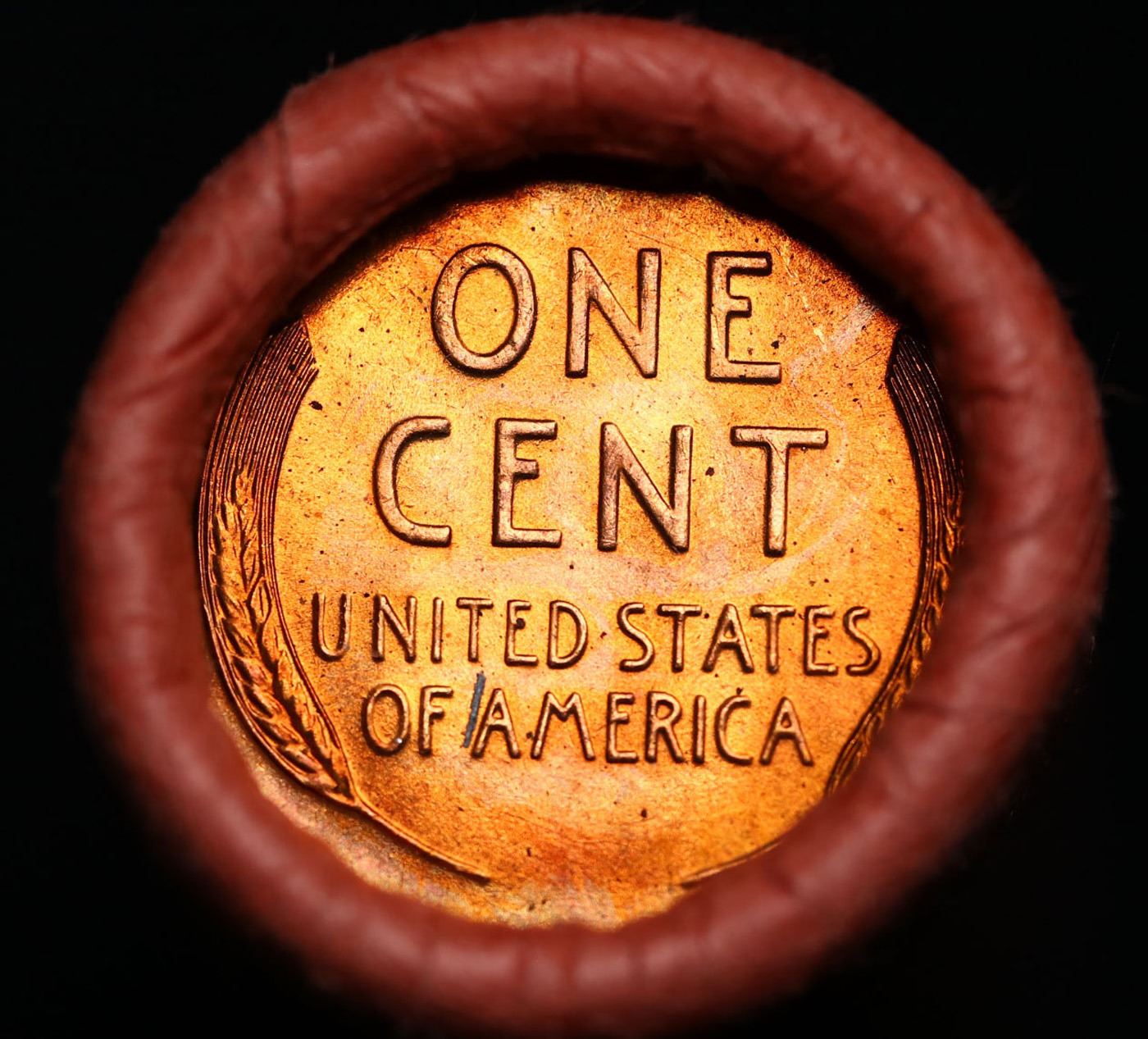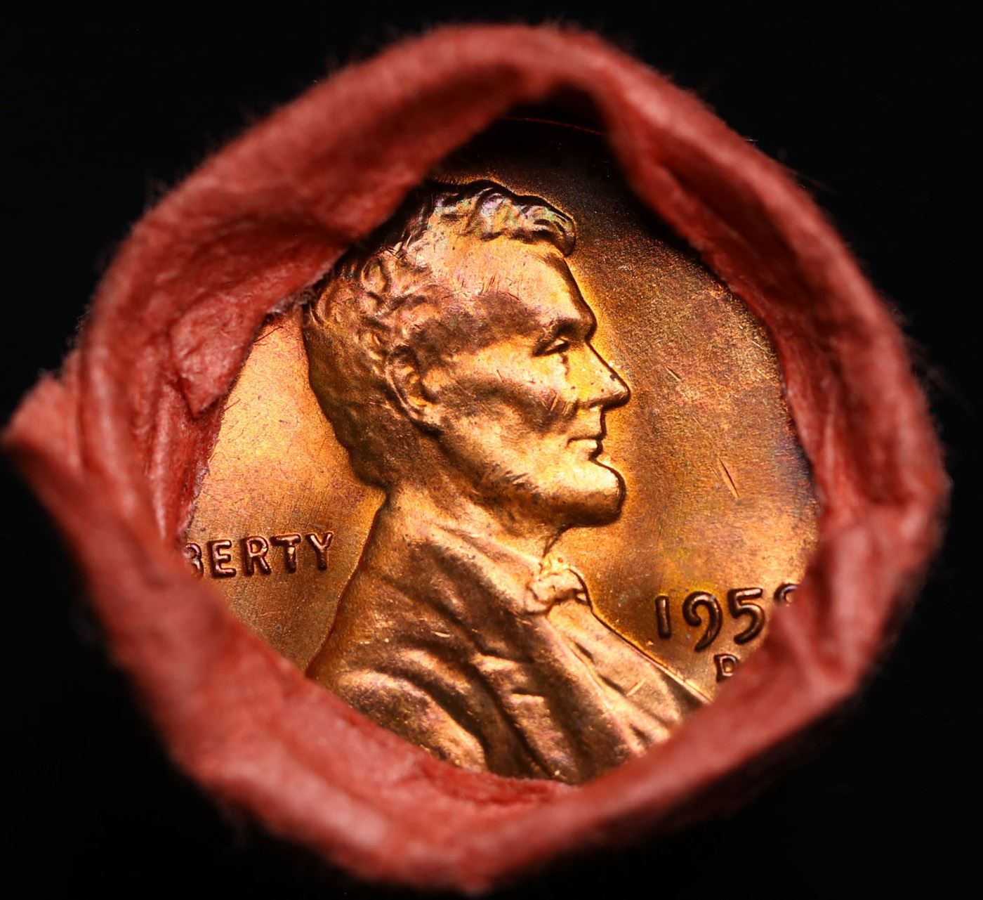 BU Shotgun Lincoln 1c roll, 1958-d 50 pcs Brandt Wrapper 50c. A terrific Shotgun roll of Lincoln cents in a steel strong wrapper. Most if not all coins should be cherry red.