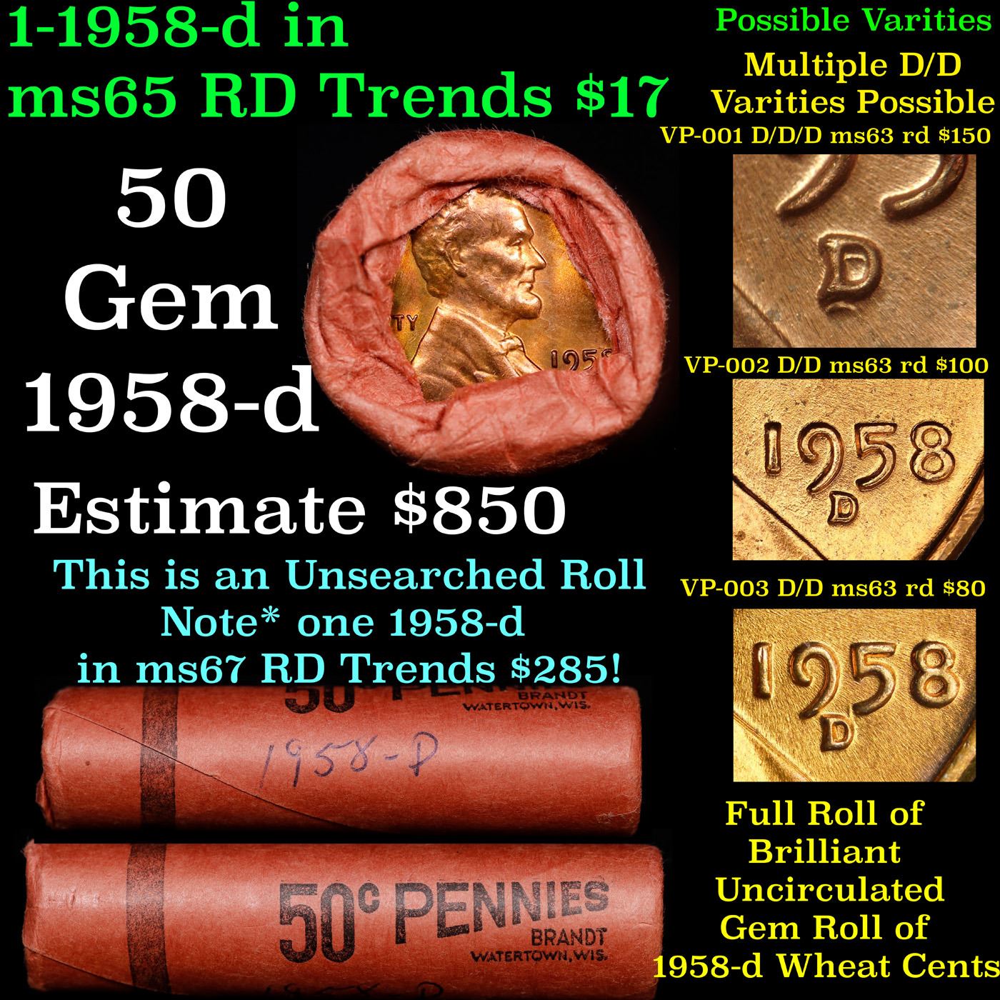 BU Shotgun Lincoln 1c roll, 1958-d 50 pcs Original Brandt Wrapper