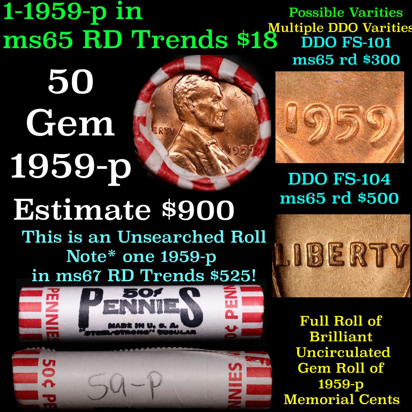 BU Shotgun Lincoln 1c roll, 1959-p 50 pcs Steel-Strong Wrapper 50c
