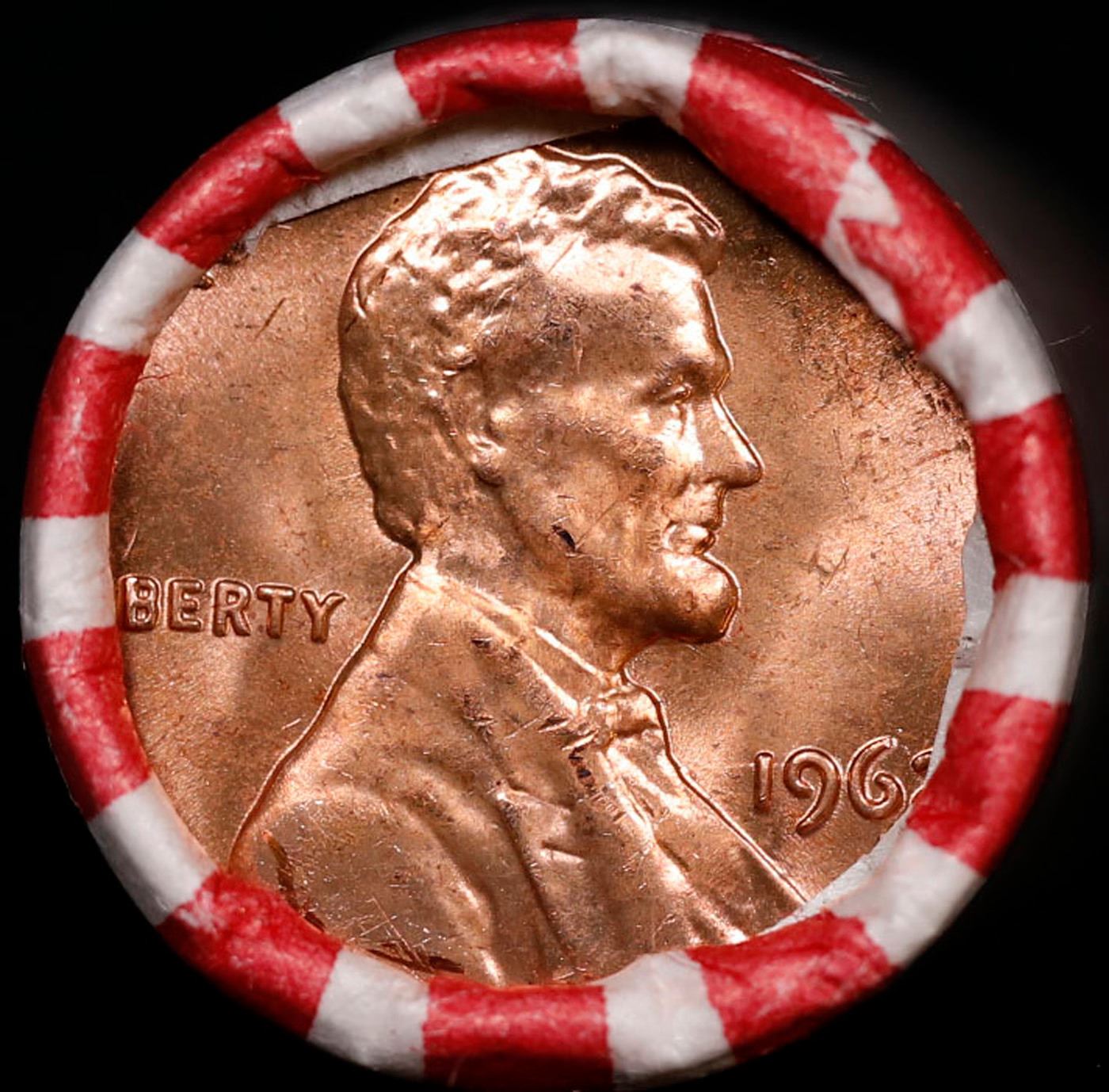 BU Shotgun Lincoln 1c roll, 1962-p 50 pcs Steel-Strong Wrapper 50c. A terrific Shotgun roll of Lincoln cents in a steel strong wrapper. Most if not all coins should be cherry red.
