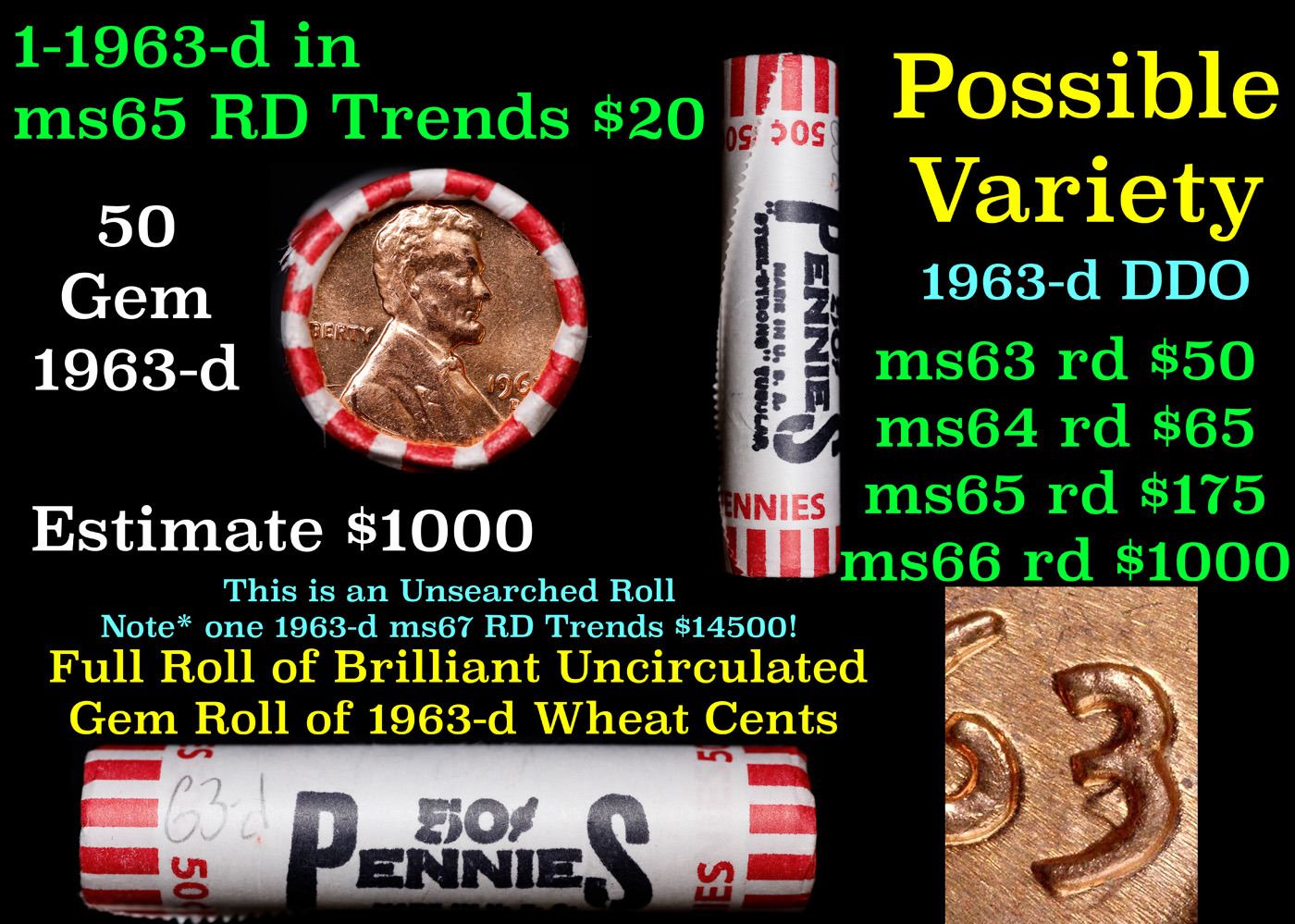 BU Shotgun Lincoln 1c roll, 1963-d 50 pcs Steel-Strong Wrapper DDO Variety Possible