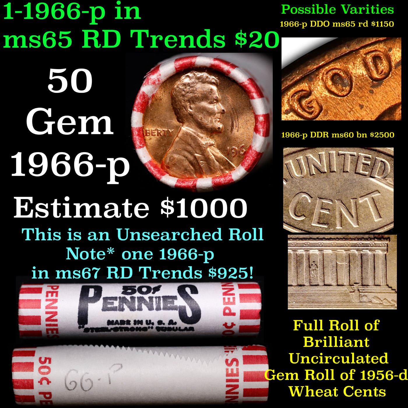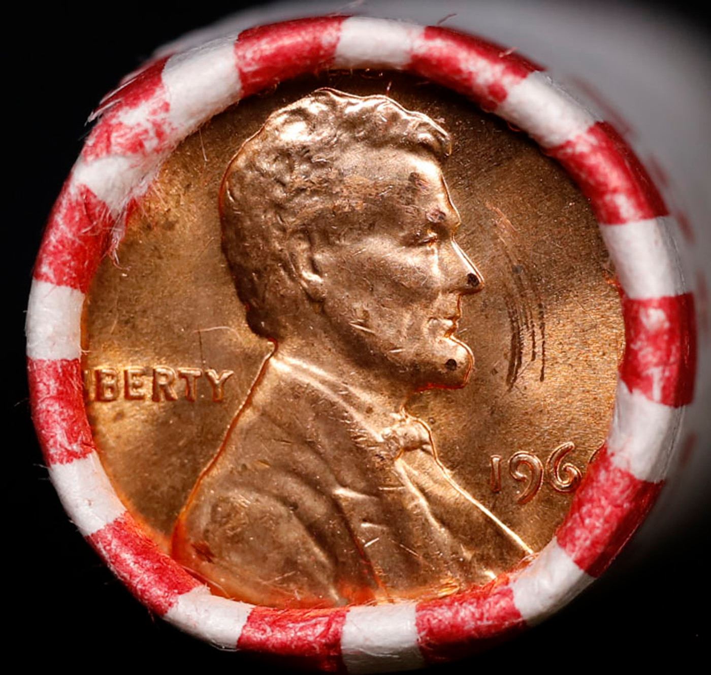 BU Shotgun Lincoln 1c roll, 1966-p 50 pcs Steel-Strong Wrapper 50c. A terrific Shotgun roll of Lincoln cents in a steel strong wrapper. Most if not all coins should be cherry red.