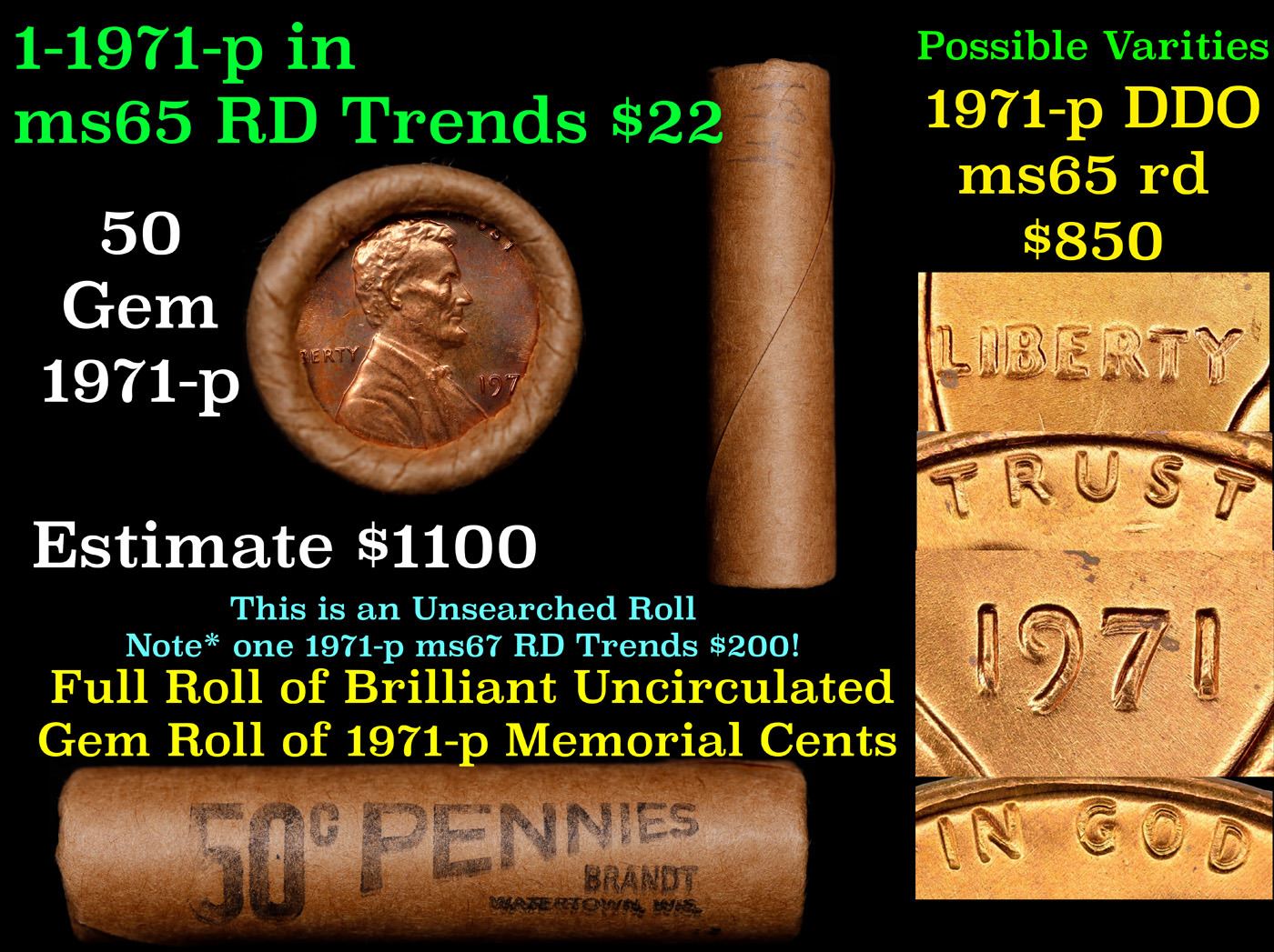BU Shotgun Lincoln 1c roll, 1971-p 50 pcs Brandt Wrapper DDO Variety Possible