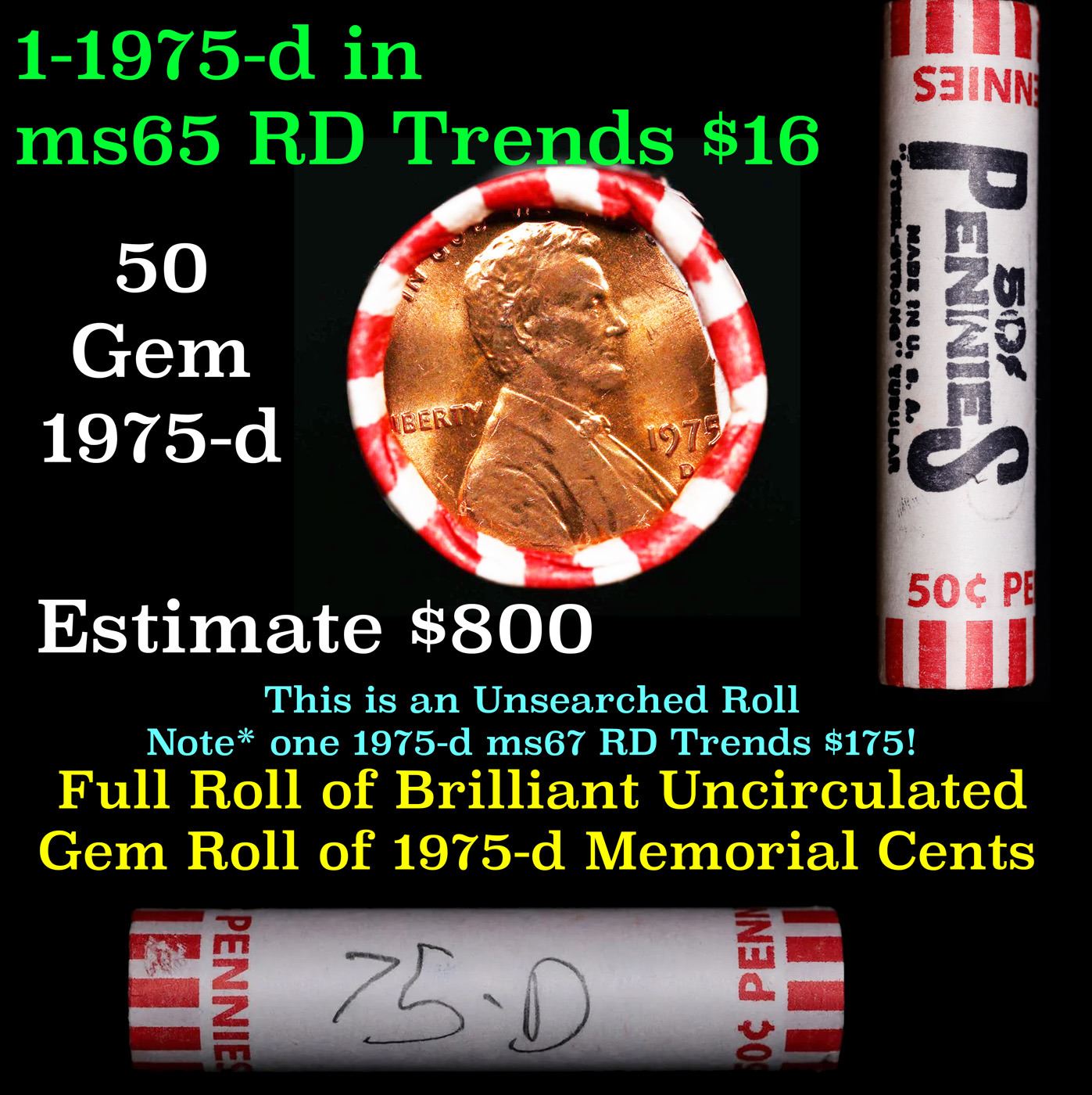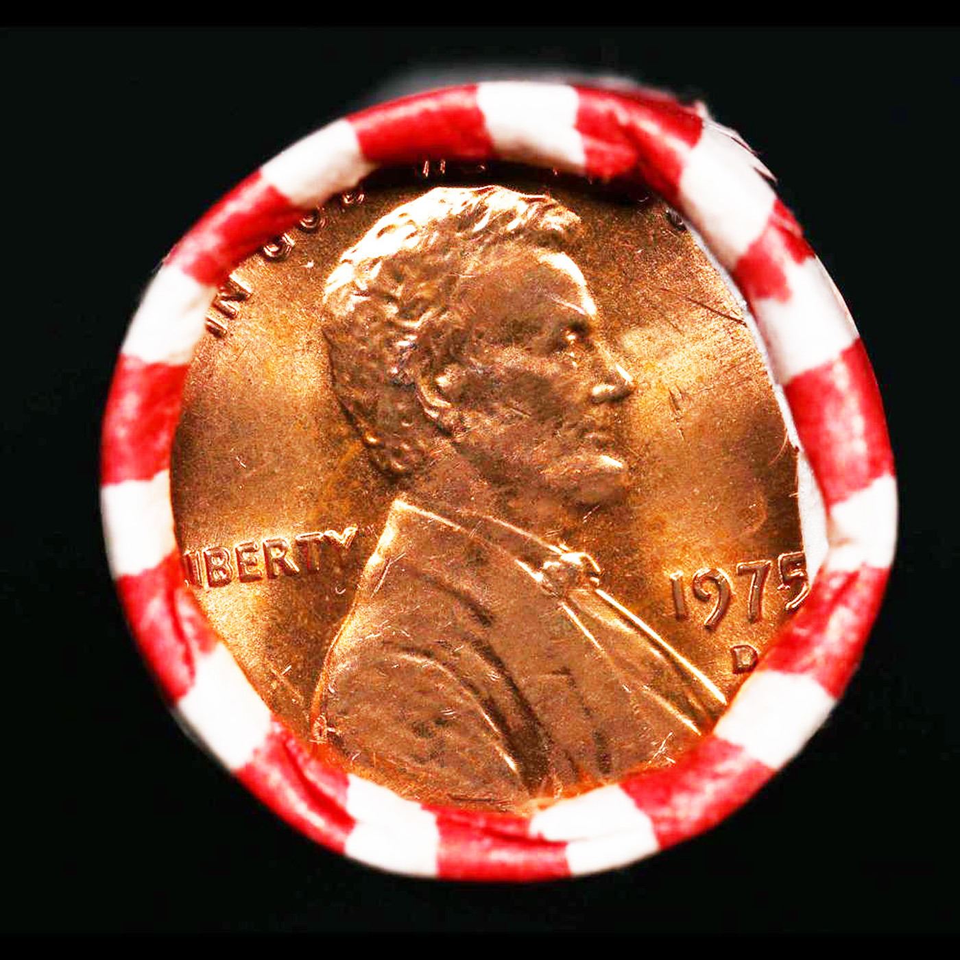 BU Shotgun Lincoln 1c roll, 1975-p 50 pcs Steel-Strong Wrapper 50c. A terrific Shotgun roll of Lincoln cents in a steel strong wrapper. Most if not all coins should be cherry red.