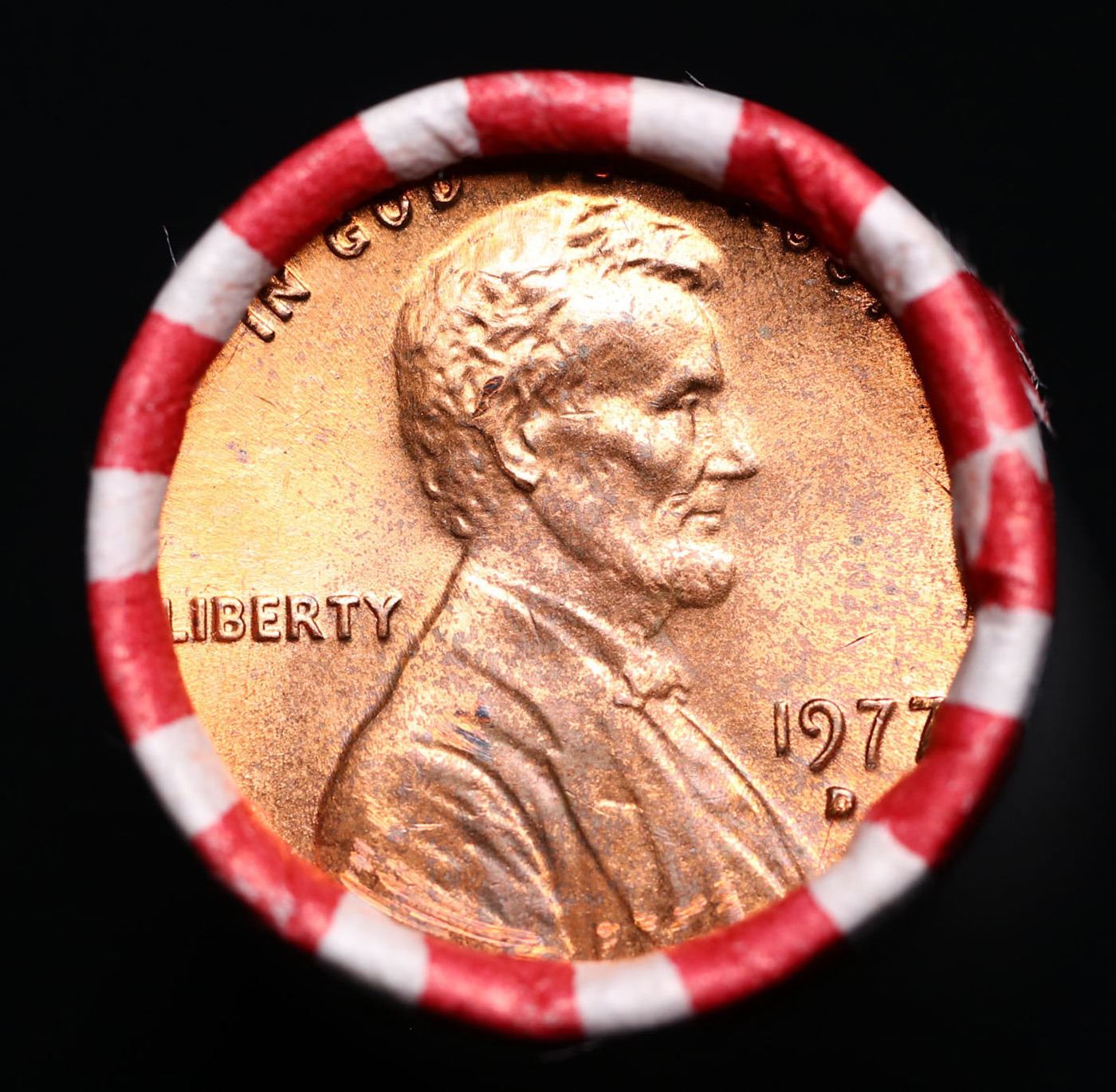 BU Shotgun Lincoln 1c roll, 1977-d 50 pcs Steel-Strong Wrapper 50c. A terrific Shotgun roll of Lincoln cents in a steel strong wrapper. Most if not all coins should be cherry red.