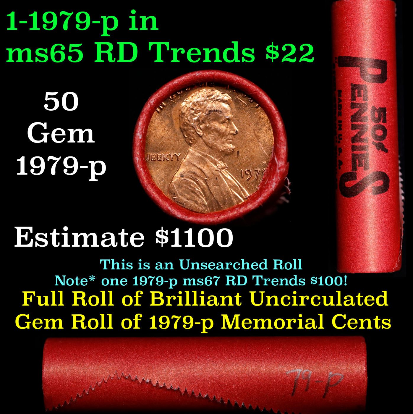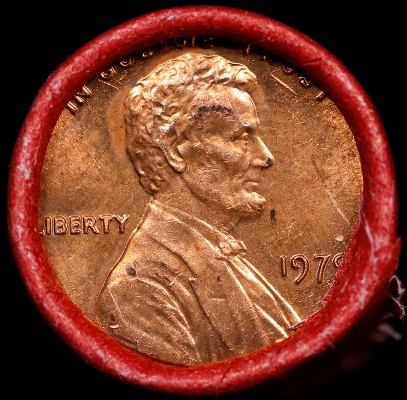 BU Shotgun Lincoln 1c roll, 1979-p 50 pcs Steel-Strong Wrapper 50c. A terrific Shotgun roll of Lincoln cents in a steel strong wrapper. Most if not all coins should be cherry red.