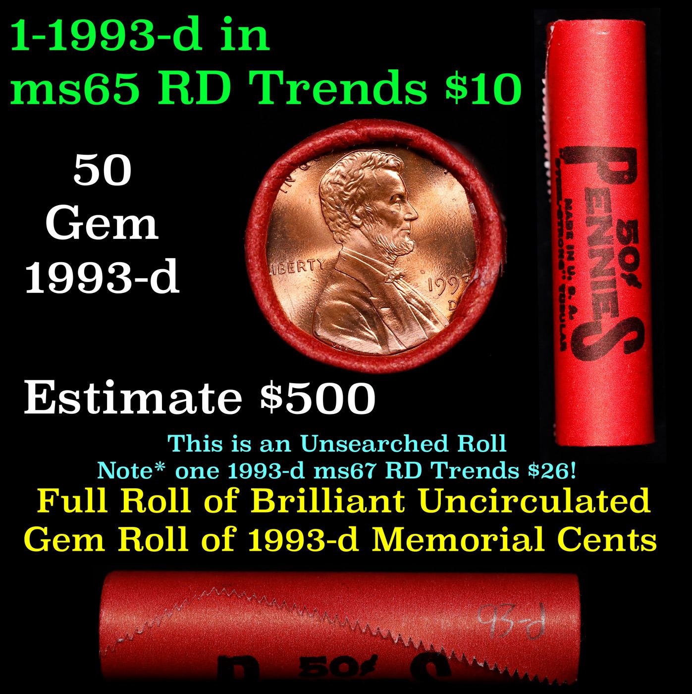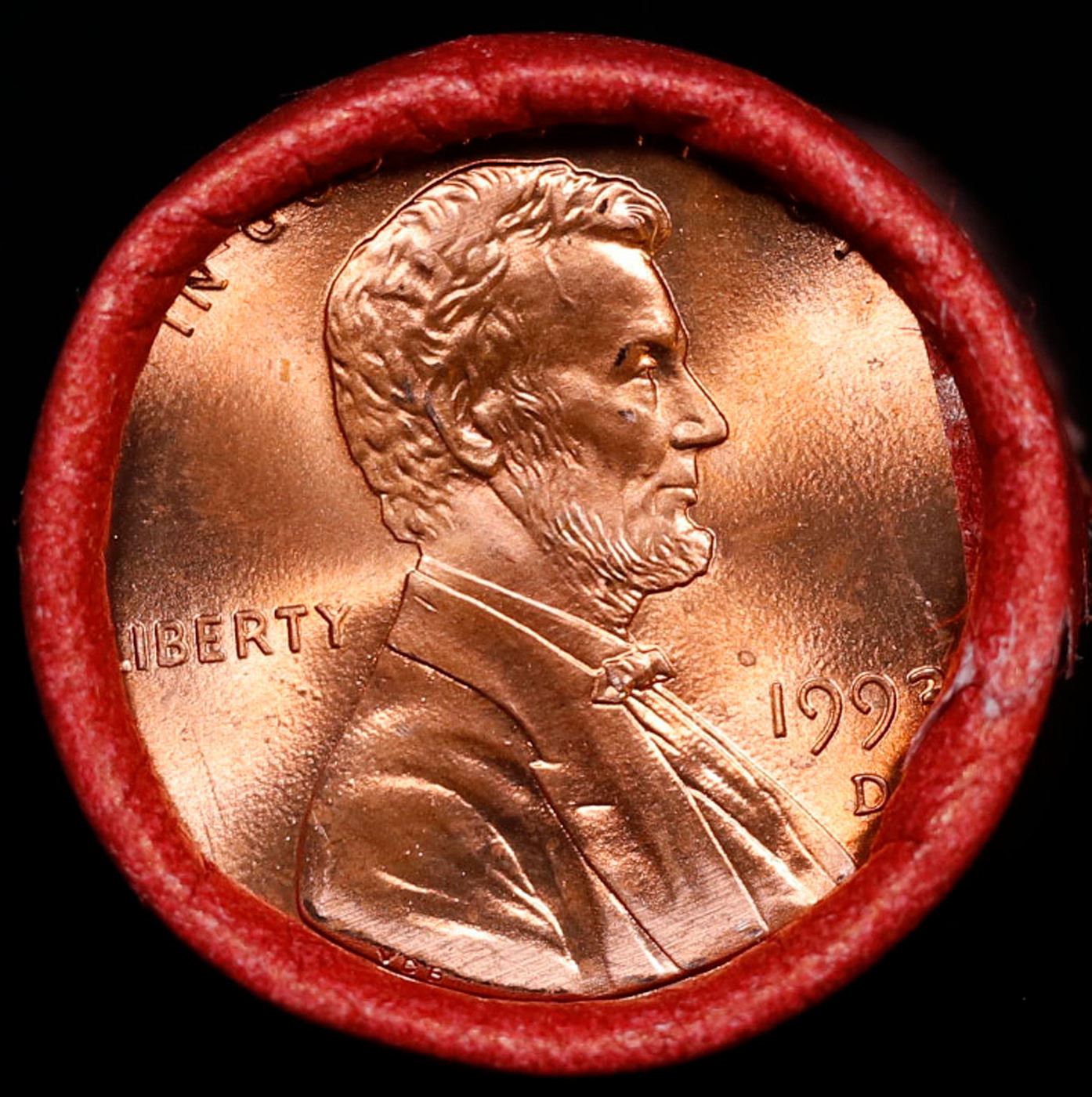 BU Shotgun Lincoln 1c roll, 1993-d 50 pcs Steel-Strong Wrapper 50c. A terrific Shotgun roll of Lincoln cents in a steel strong wrapper. Most if not all coins should be cherry red.