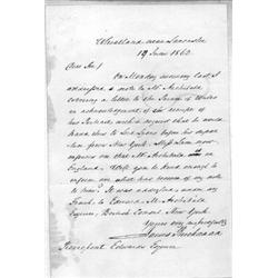 (1791 - 1868) Fifteenth President of the United States whose hands-off attitude toward states' rights directly contributed to the start of the Civil War. A.L.S. 1p. 8vo., Wheatland, June 17, 1862 to Pierrepont Edwards (1817-1892), Attorney General, 1875-76 and thence Minister to Great Britain. In part: "… I addressed a note…covering a letter to the Prince of Wales in acknowledgement of the receipt of his Portrait…Miss [Harriet] Lane now informs me that Mr. Archibald is in England. Will you be kind enough to inform me what has become of my note to him?…". Very light dampstain is barely noticeable, else very good.