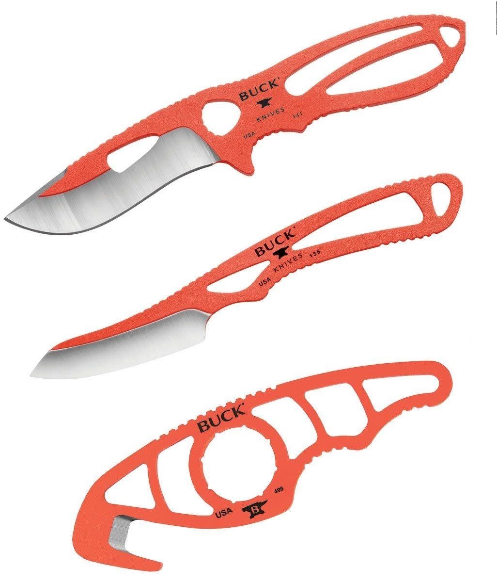 3-1/2? Skinning Blade, 2-1/2? Caping Blade plus Gut Hook Ring all with Orange Traction Coating