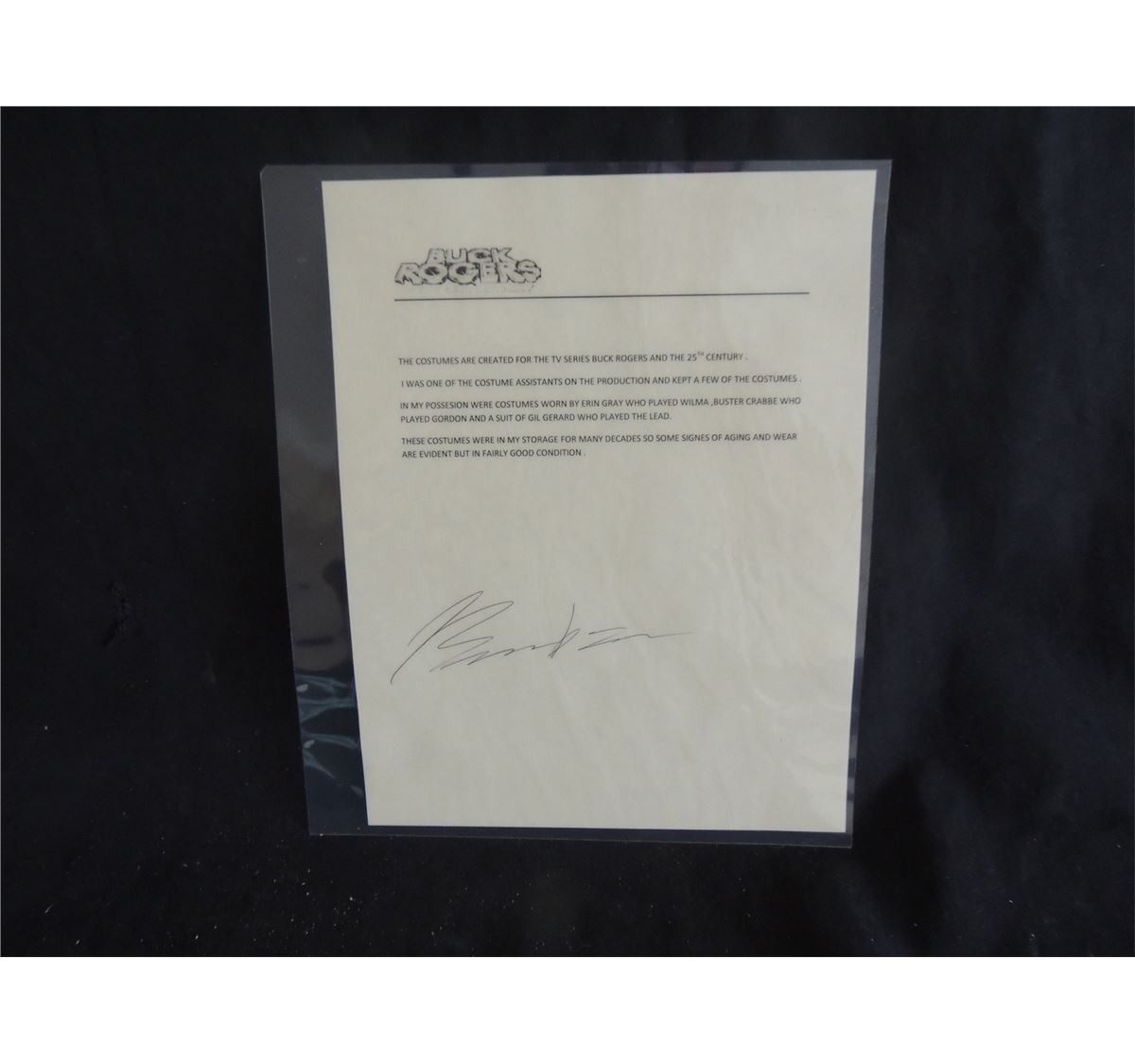 This is the complete OOAK flight suit warn by Buster Crabbe [The original Buck Rogers and Flash Gordon] as Brigadier Gordon in the 1970's classic Sci/Fi TV show BUCK ROGERS IN THE 25TH CENTURY!