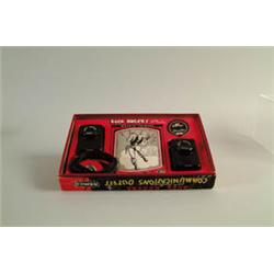Lot # 1175 BUCK ROGERS WALKIE TALKIE SET W/OB. By Remco Ind., U.S.A. A 25th C communications outfit including two walkie-talkies, connecting wire, secret decoder and original certificate. Highly graphic interior shows Buck on tv screen, decoder and more. SIZE: Box measures 8-1/2" w x 13" l. CONDITION: Contents are very good. Box is good to very good with some edge wear and top crease. 1-28820 (150-300)