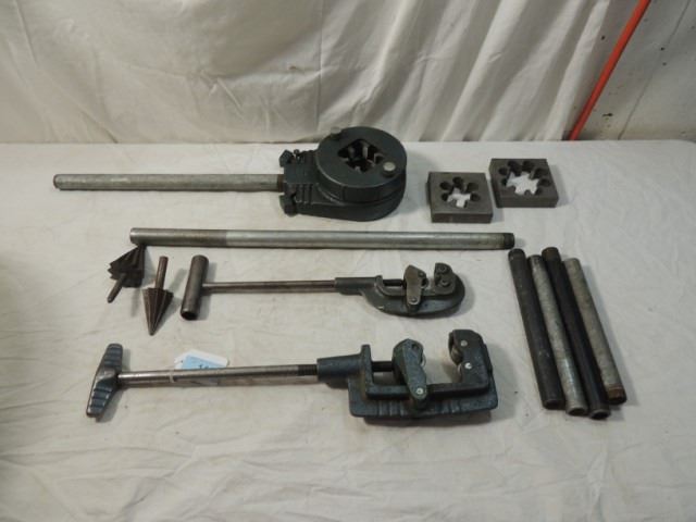 HUGE BUCKET FULL OF HEAVY DUTY PLUMBING TOOLS, PIPE CUTTERS, ETC. AS SHOWN. ALL FOR ONE MONEY!