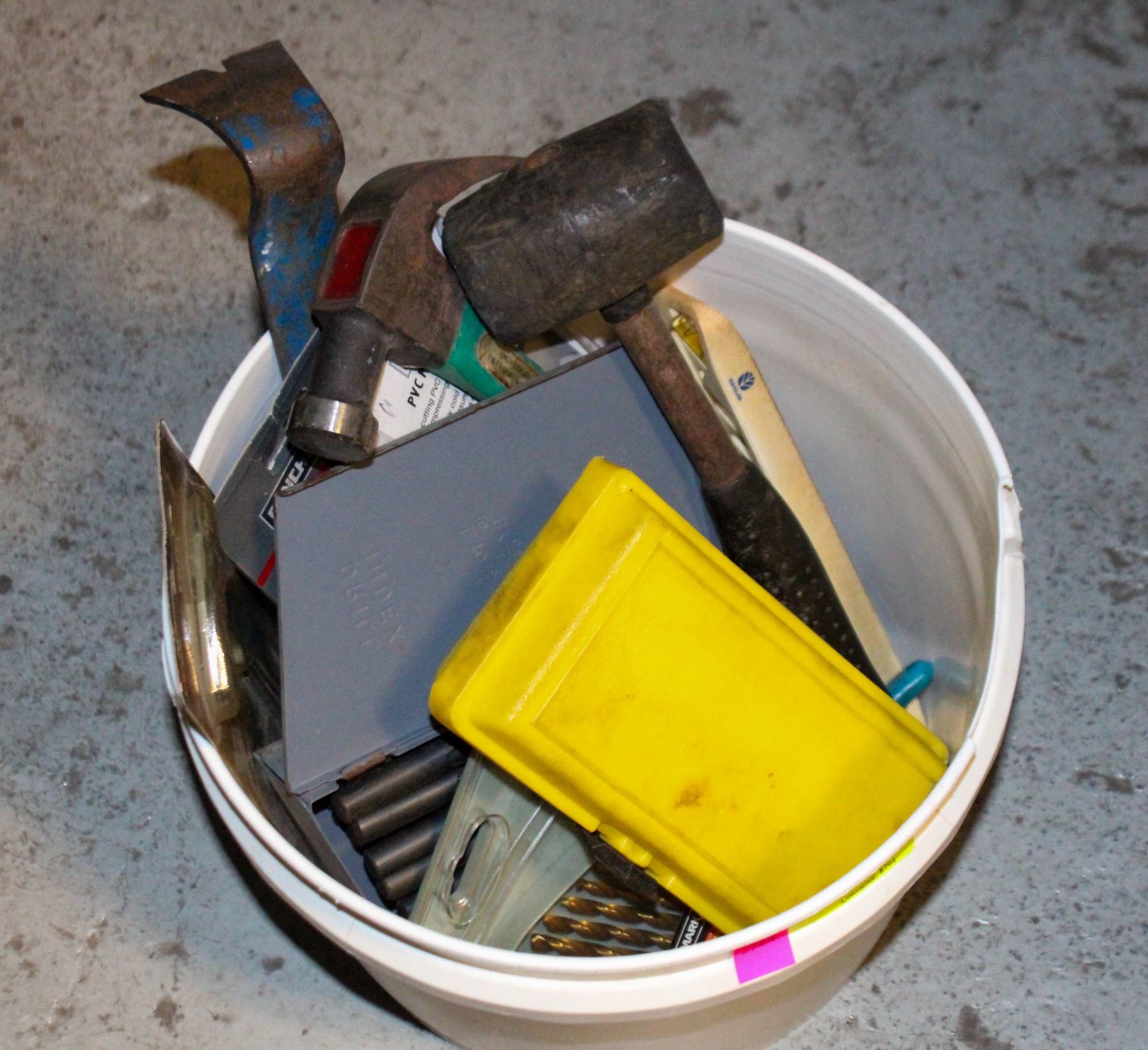 BUCKET OF HAMMERS, HOLE SAW KIT,