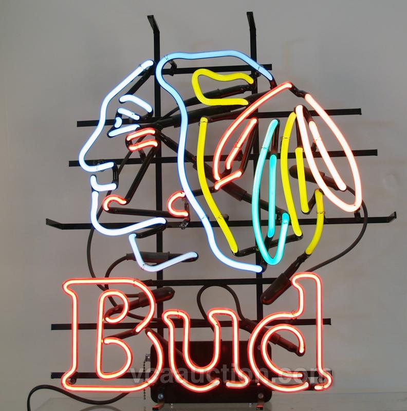 "BUD" Black Hawk Indian Head Neon Sign - 20" x 23"