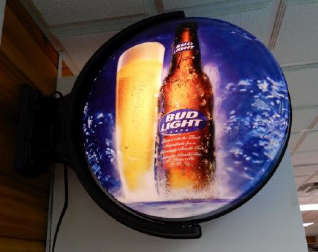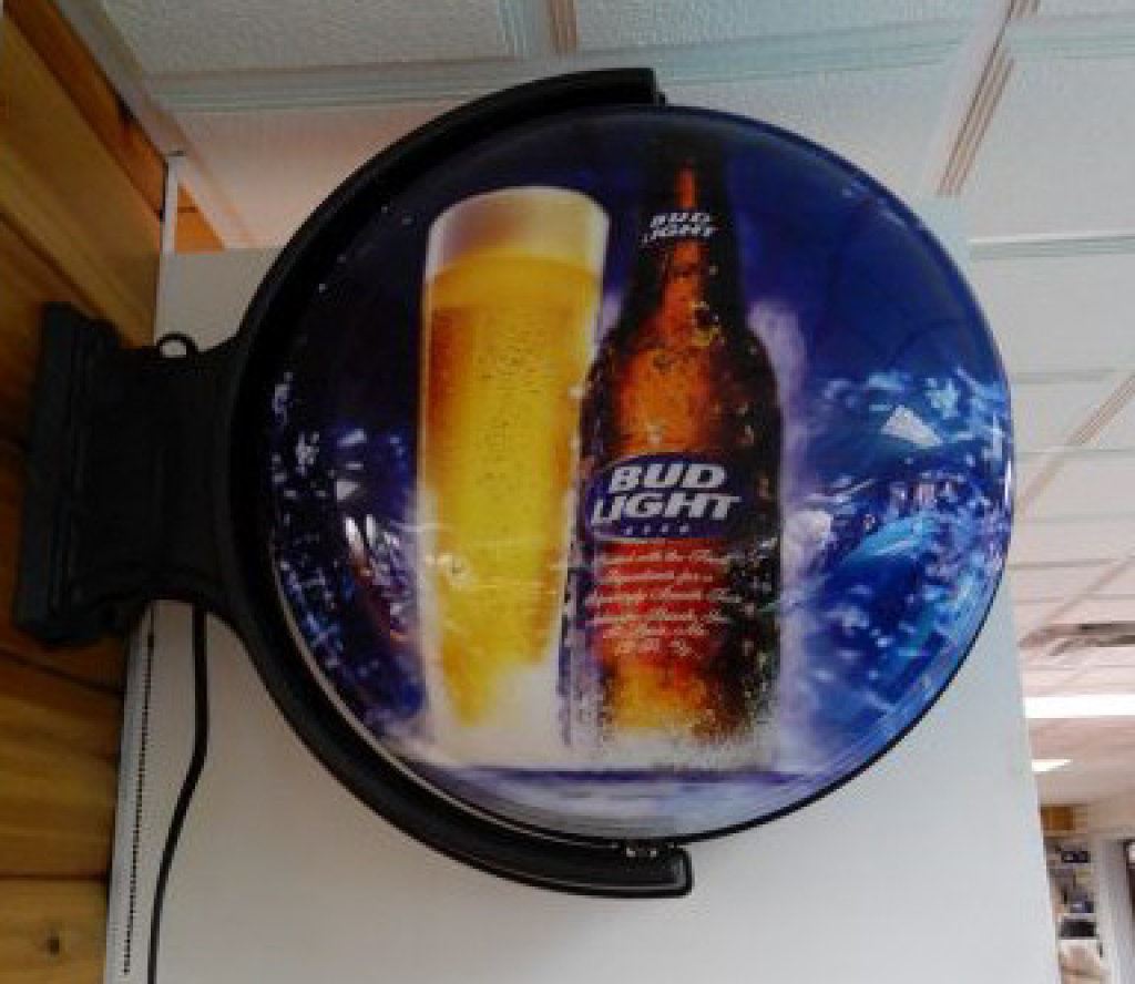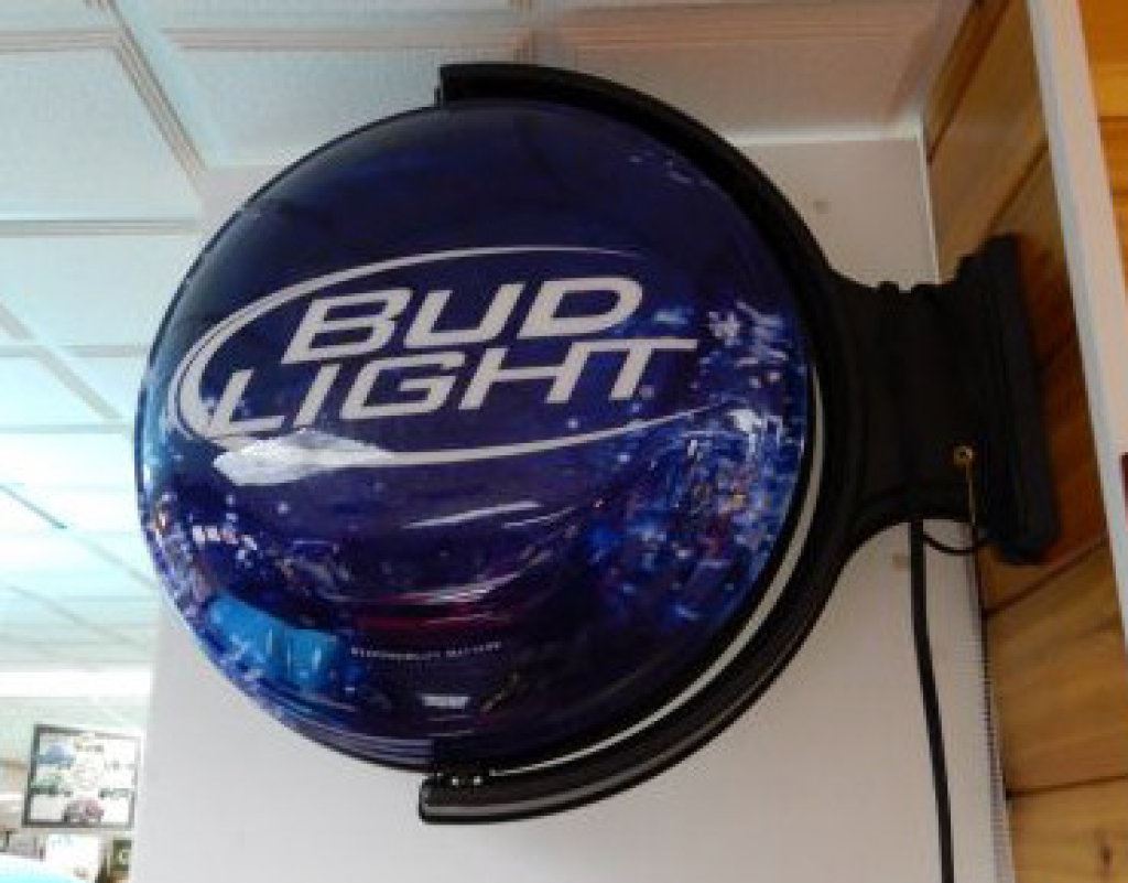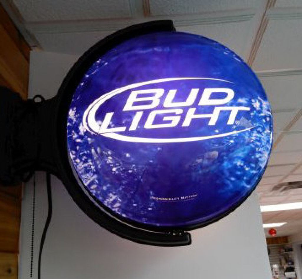 BUD LIGHT LIGHT-UP WALL MOUNT SPINNER WORKING - 21" X 23" X 8" LOCATION: LOWER LEFT