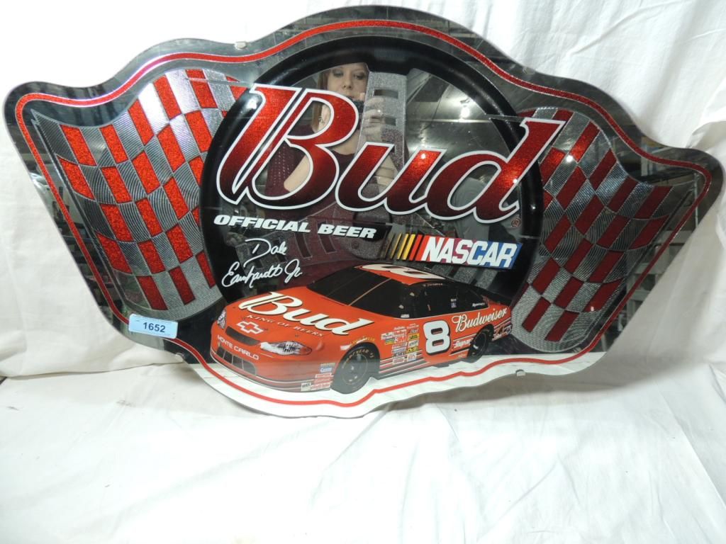 BUDWEISER DALE JR 1ST EDITION NASCAR BAR MIRROR SIZE 28" X 36" BUDWEISER DALE JR 1ST EDITION NASCAR BAR MIRROR SIGN. AS SHOWN. SEE PHOTO FOR MORE DETAILS.