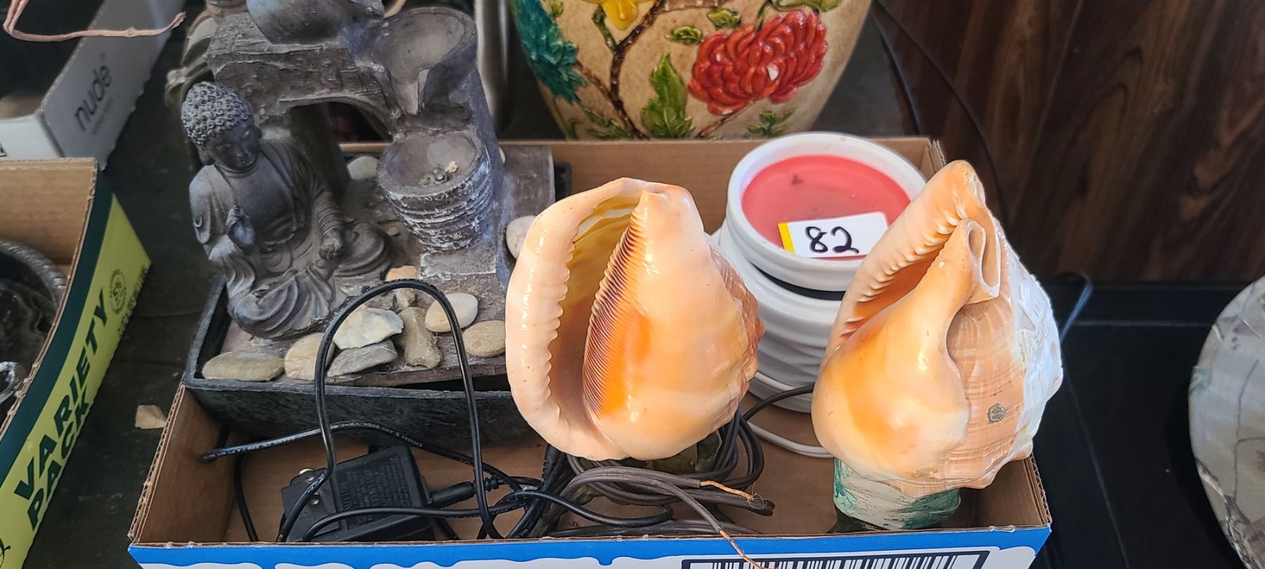 BUDDHA FOUNTAIN, SEA SHELL LAMPS, INSENSE BURNER ECT