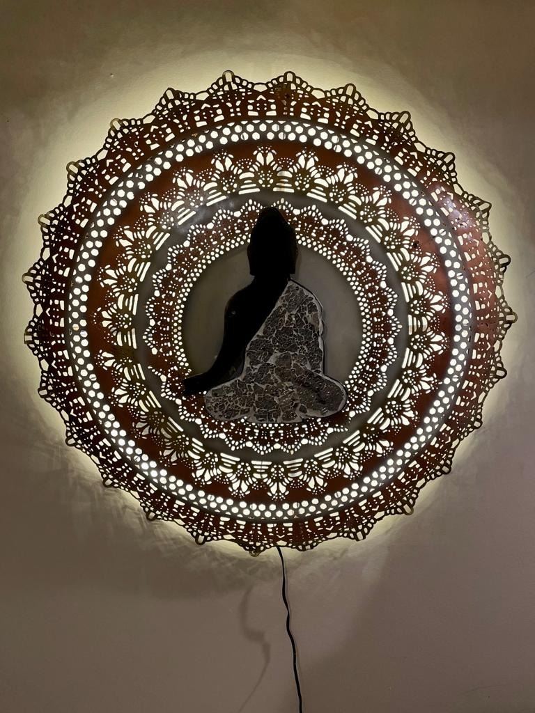 BUDDHA ROUND METAL WALL ART WITH LED LIGHTS