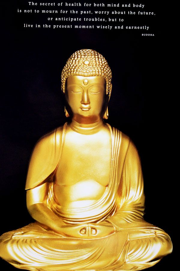 BUDDHA **|**|** 24X36IN;UNFRAMED; This poster shows a gold seated Buddha. At the top it says The secret of health for both mind and body is not to mourn for the past, worry about the future, or anticipate troubles, but to live in th epresent moment wisely and earnestly. Buddha.; In Buddhism, a buddha is any being who has become fully awakened (enlightened), and has experienced Nirvana. All Buddhist traditions hold that a Buddha has completely purified his mind of desire, aversion and ignorance. A Buddha is fully awakened and has realized the ultimate truth, the non-dualistic nature of life, and thus ended (for himself) the suffering which unawakened people experience in life. IF YOU HAVE ANY QUESTIONS PLEASE FEEL FREE TO CONTACT US ; MSRP: $1000
