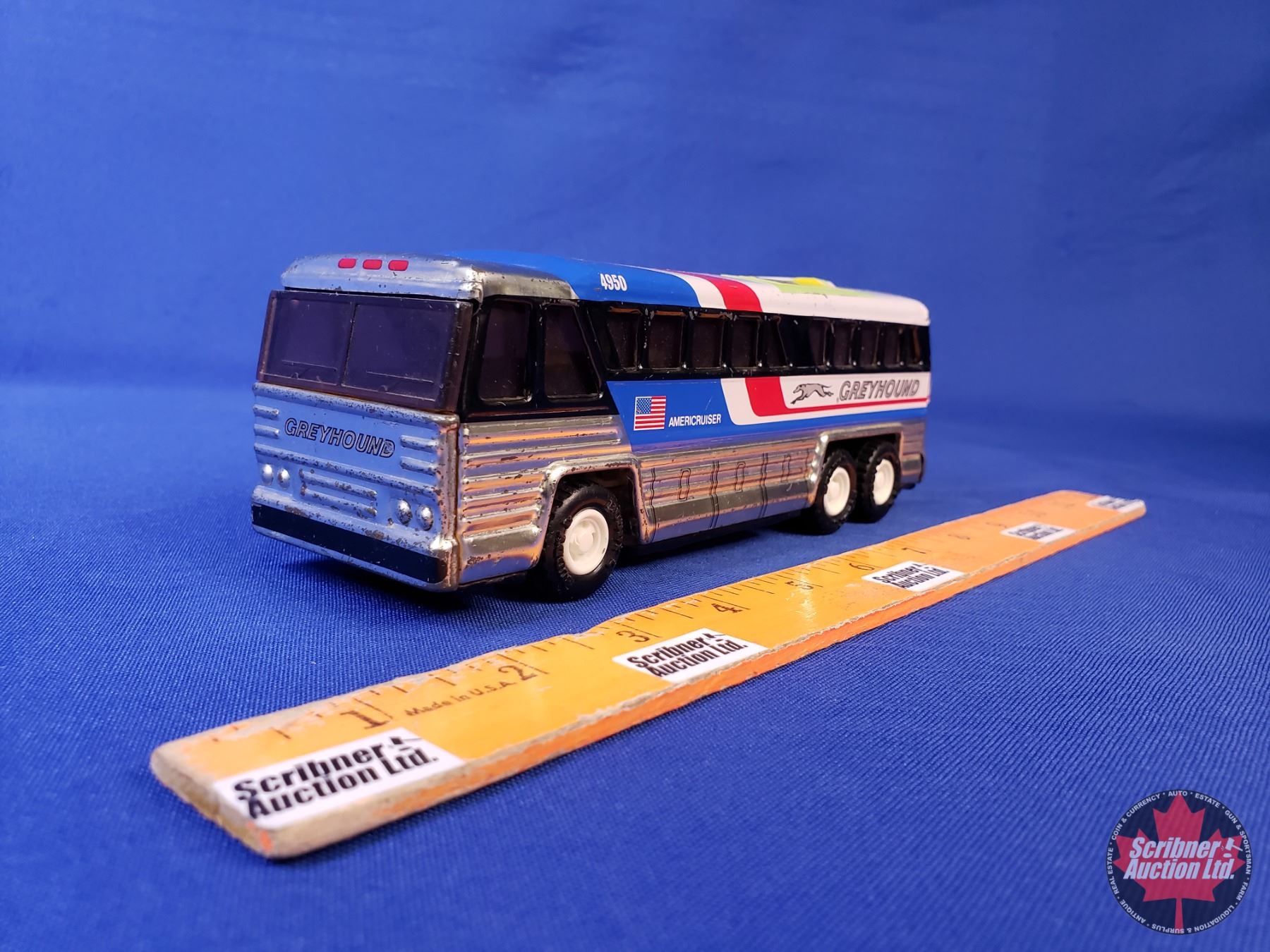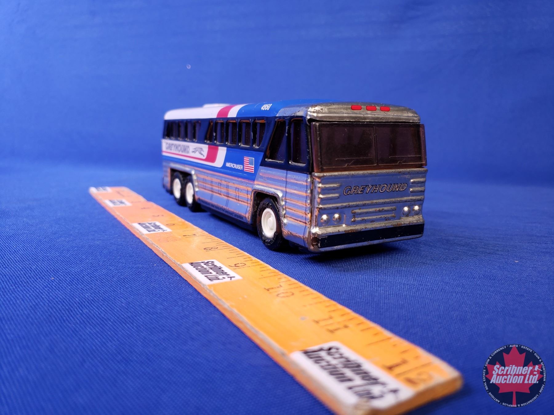 BUDDY L : Greyhound Bus c.1979 (2-1/2'H x 2-1/4"W x 7-1/2"D) (SEE PICS!)