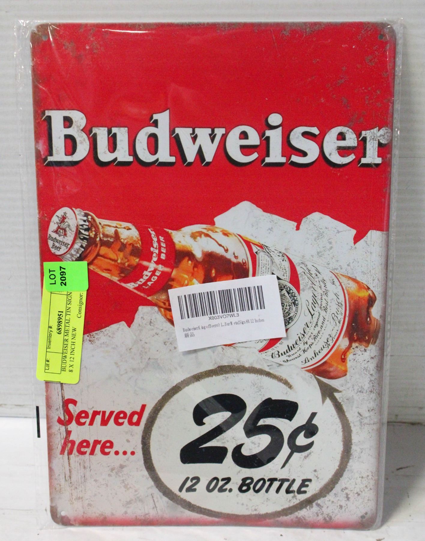 BUDWEISER METAL TIN SIGN DCOR 8 X 12 INCH NEW
