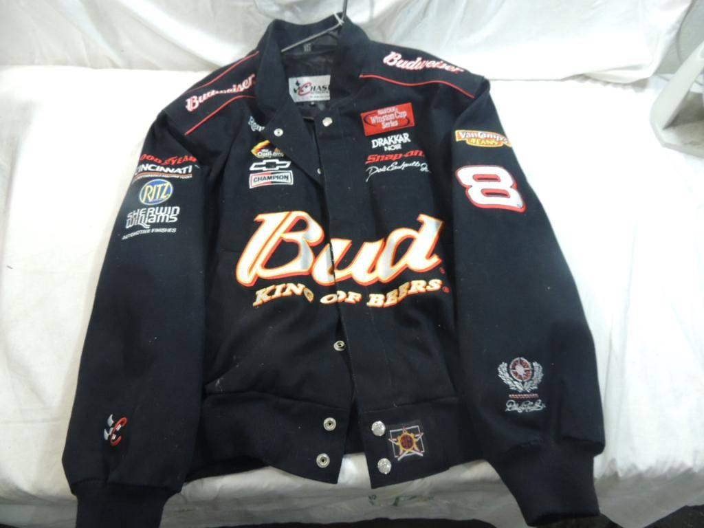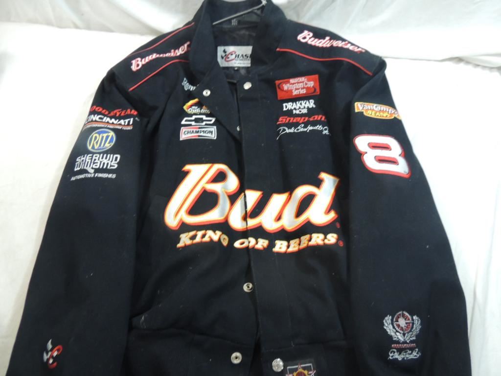 #8 DALE EARNHARDT JR BUDWEISER KING OF BEERS NASCAR JACKET, CHASE AUTHENTICS SIZE MEDIUM, NASCAR PROMOTION JACKET AS SHOWN SEE PHOTO FOR MORE DETAILS.