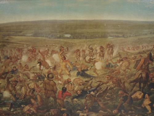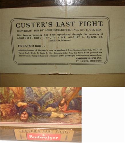 LARGE BUDWEISER 'CUSTER'S LAST FIGHT' PRINT. Copyrighted 1952 on reverse. Shows some signs of wear. 42" x 28.5"