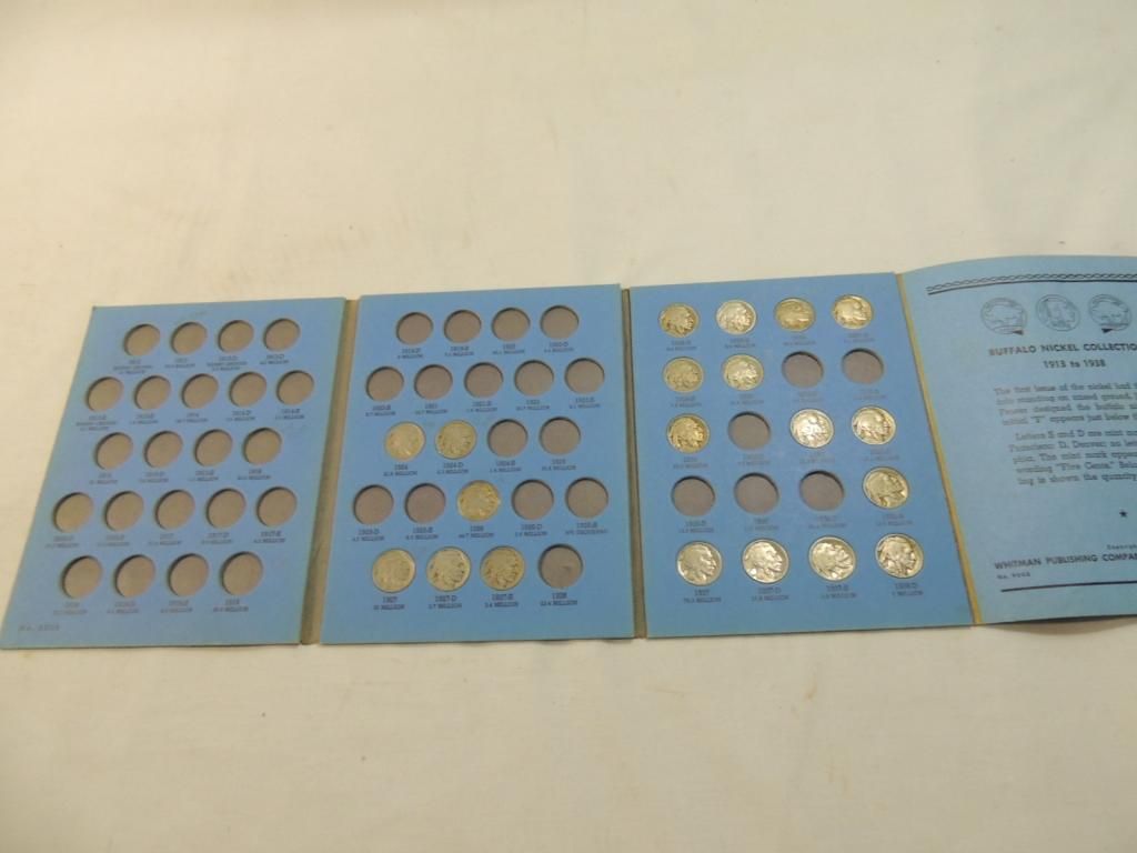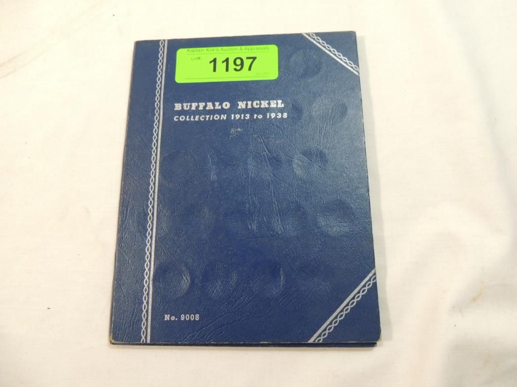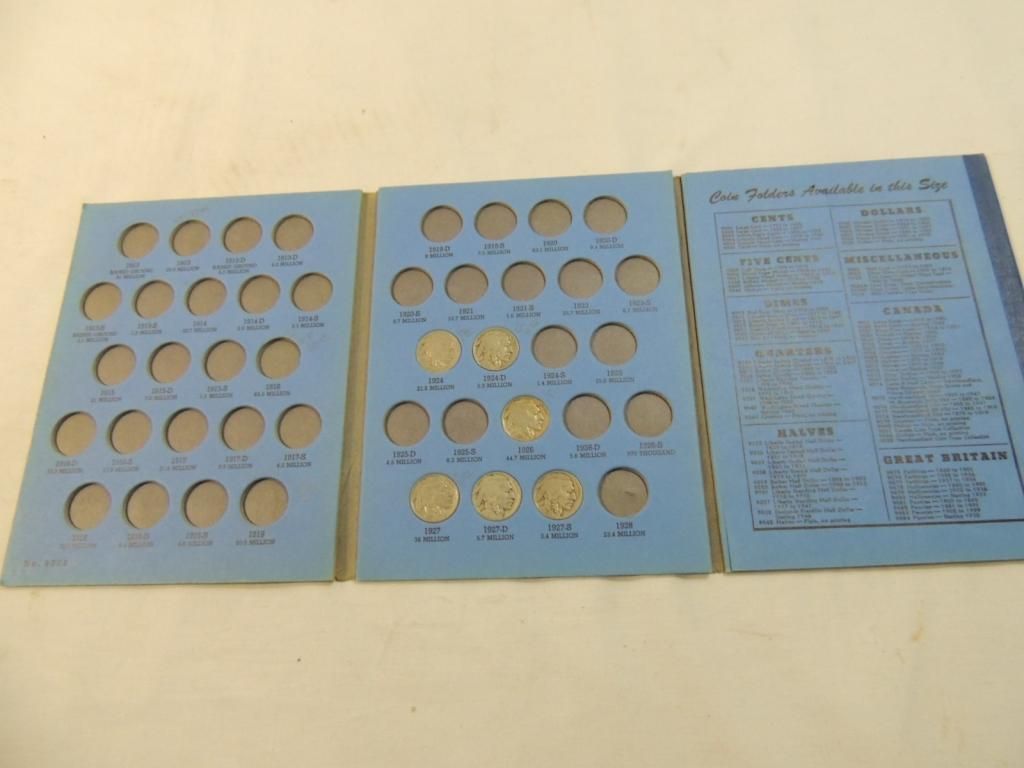 BUFFALO NICKEL COLLECTION 1913-1938 ALBUM. ASSORTED NICKELS INCLUDED. 20 NICKELS INCLUDED. US CURRENCY COIN COLLECTIBLE. AS SHOWN SEE PHOTO FOR MORE DETAILS.