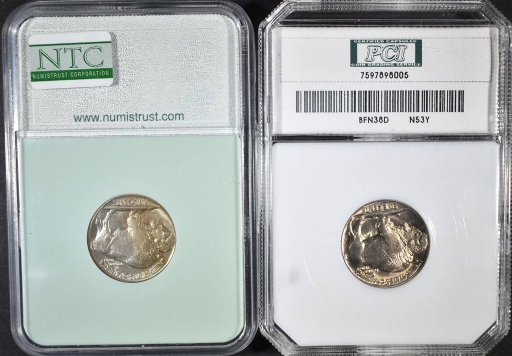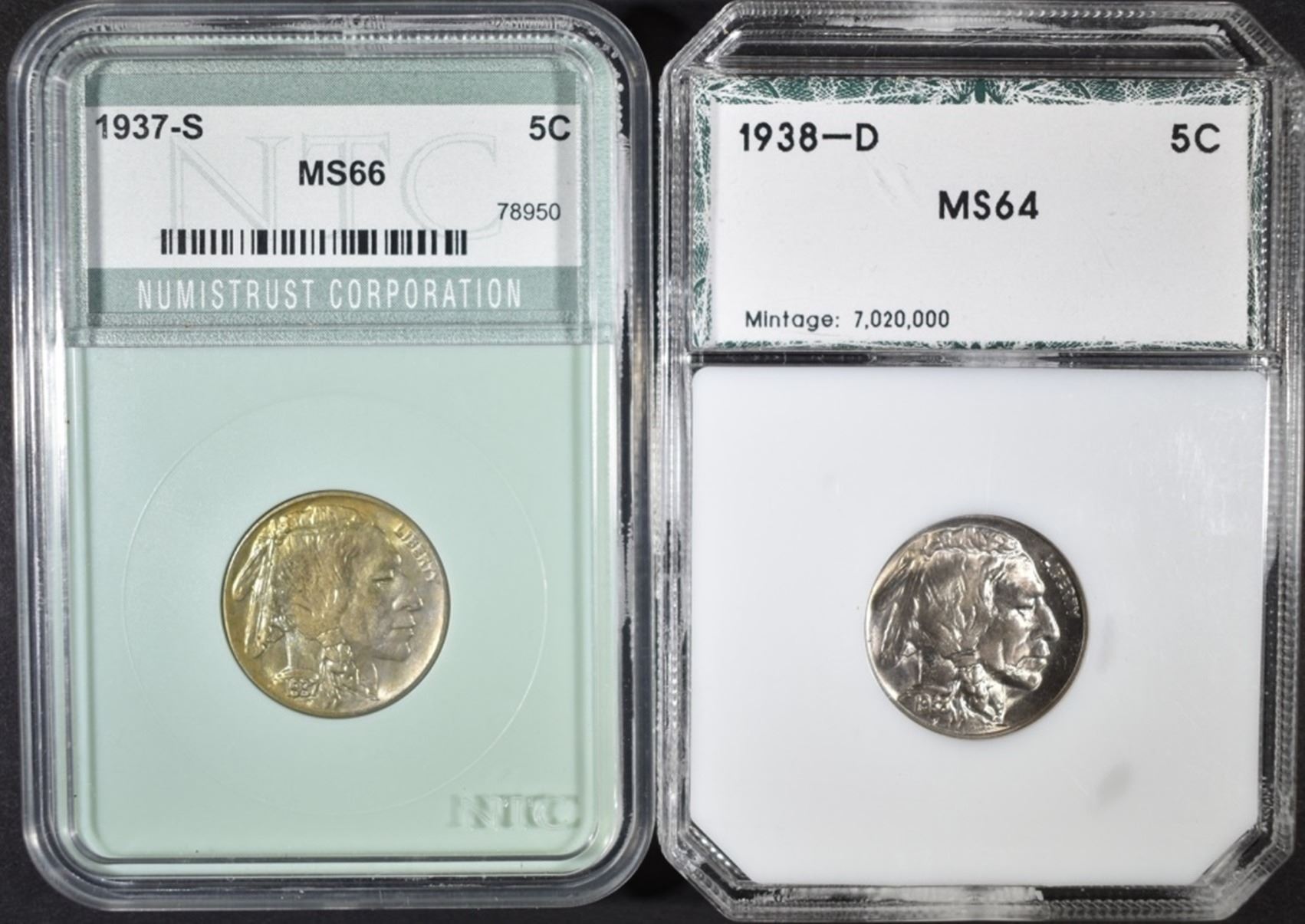 1937-S NTC SUPERB GEM BU & 1938-D PCI CH/GEM BU ESTIMATE $90 - $100.