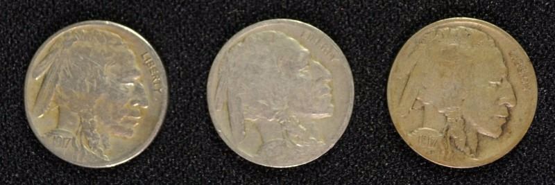 BUFFALO NICKELS: 1917 F, 1917 D F-VF, 1917-S FINE