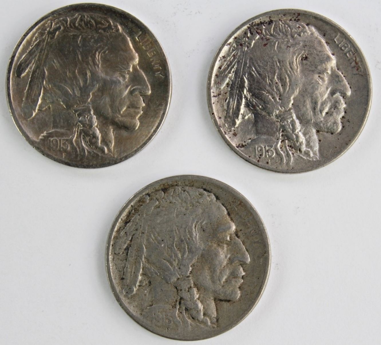1913 TYPE 2 XF, 1913 TYPE 1 AU AND 1913-D TYPE 1 VF. ESTIMATE: $75-$100