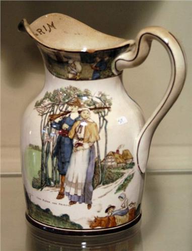 BUFFALO POTTERY PILGRIM PITCHER, 9" high old flak