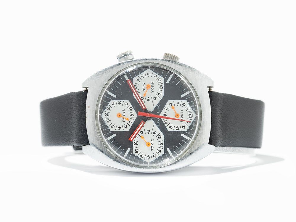 BULER Watch with Four Time Zones, Switzerland, 1970s