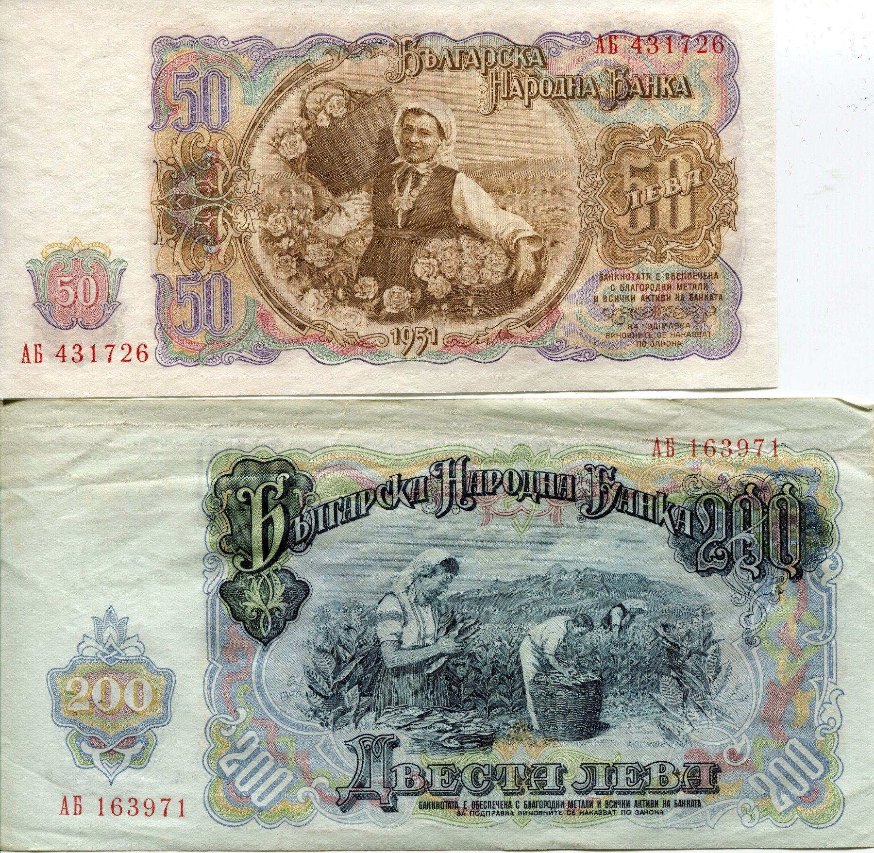BULGARIA 50 & 200 LEV BANK NOTES, BEAUTIFUL ENGRAVING