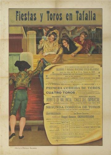 ALINAR. TOROS EN TAFALLA. 1909. 88x64cm. (34,6x25,2in.). Litografía. B. Algún desgarro restaurado.