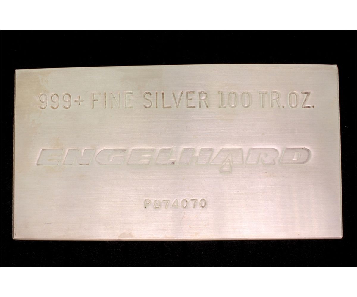 BULLION: [1] Engelhard 100 oz. .999+ Fine silver bar. SN#P874070. 3115g.