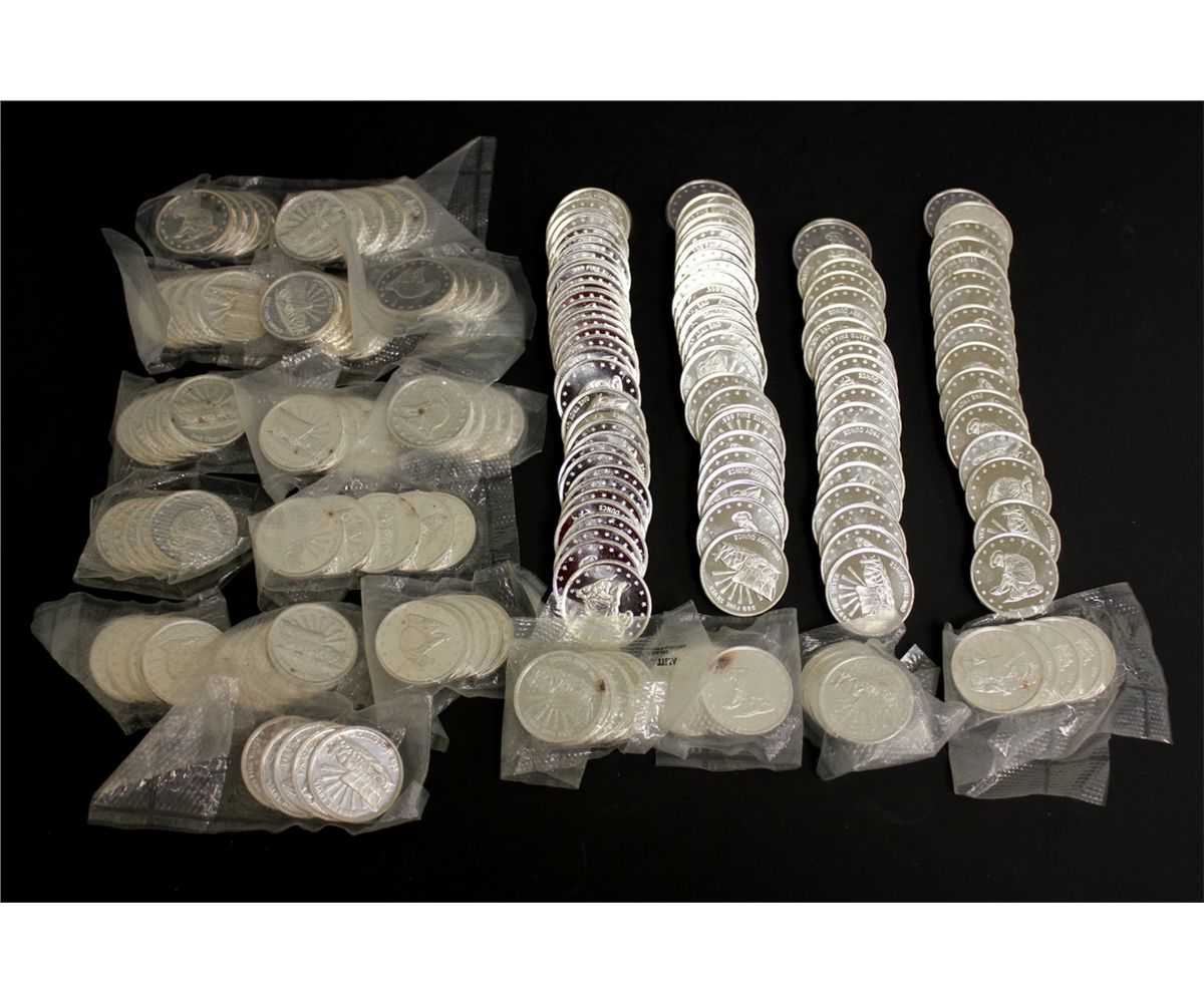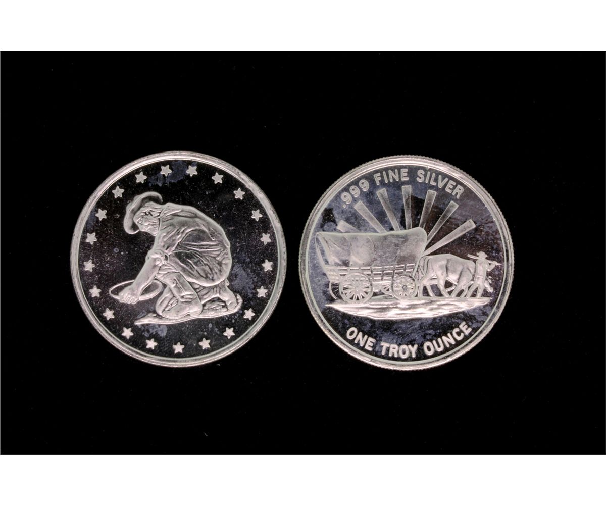 BULLION: [195] 1 Troy oz .999 fine silver rounds with Conestoga Wagon on obverse and Pan Miner on reverse.