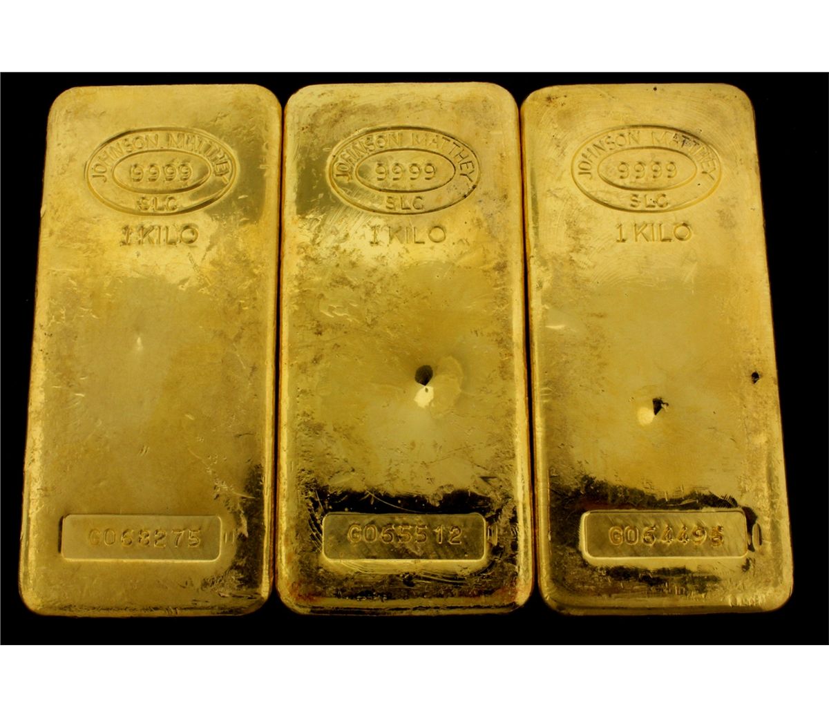 BULLION: [3] One kilogram Johnson Matthey .9999 fine gold bars.